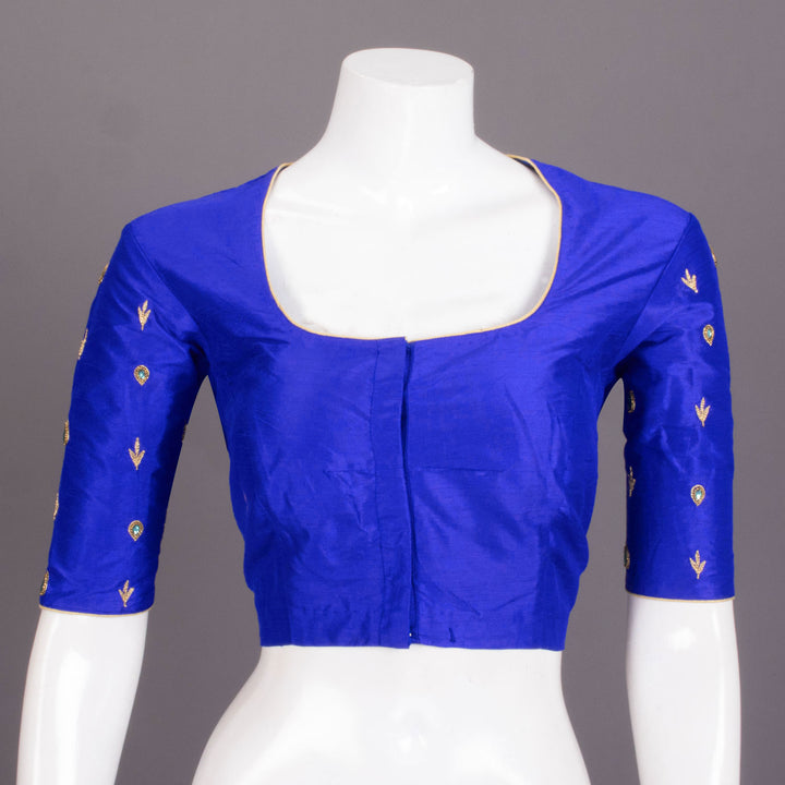 Blue Aari Embroidered Raw Silk Blouse 10068194