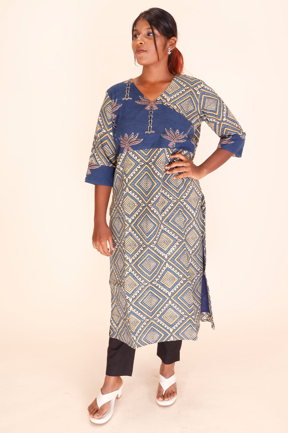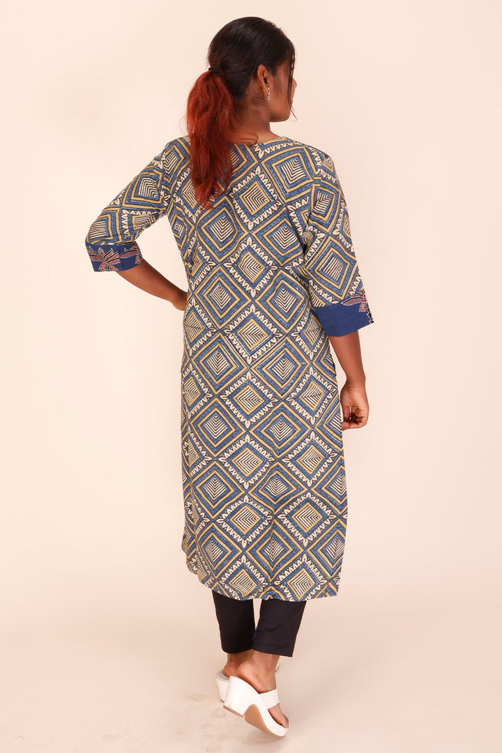 Blue Ajrakh Printed Cotton Kurta 10067395