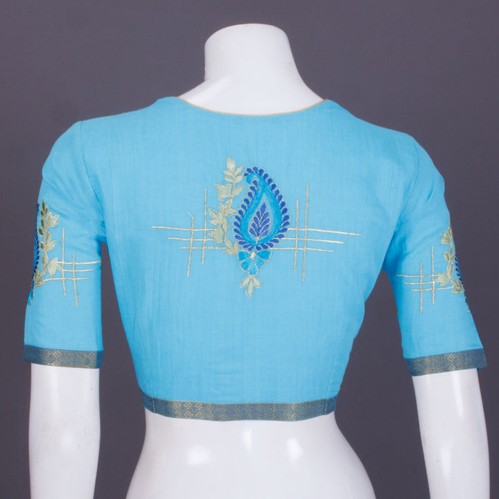 Elevate your style with this exquisite Blue Embroidered Mangalgiri Cotton Blouse! Adorned with a breathtaking floral embroidery and designed with comfortable regular sleeves, this blouse is the perfect complement to sarees for a stunning and chic appearance.