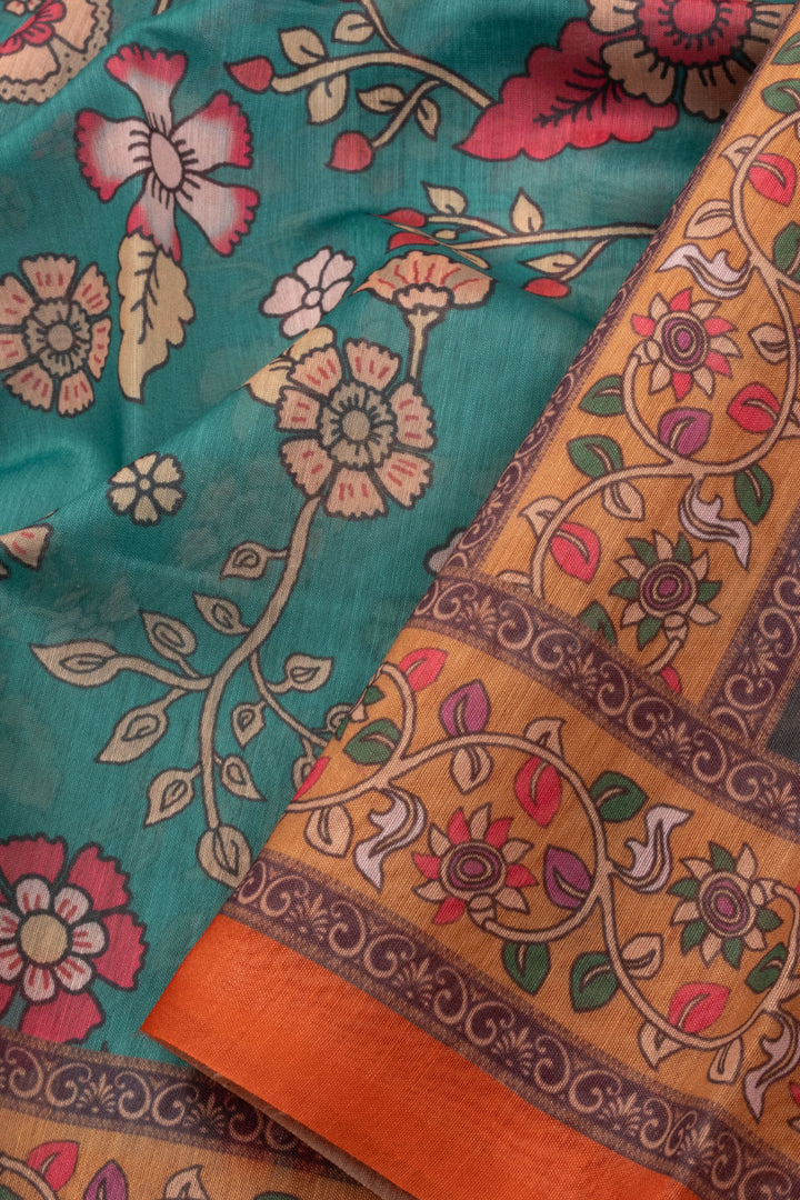 Blue Kalamkari Print Malai Cotton Saree 10071187