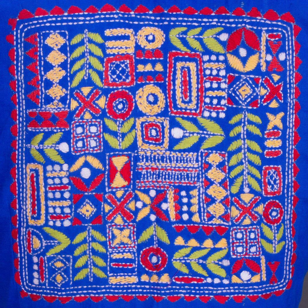 Blue Kantha Embroidered Cotton Blouse 10069547