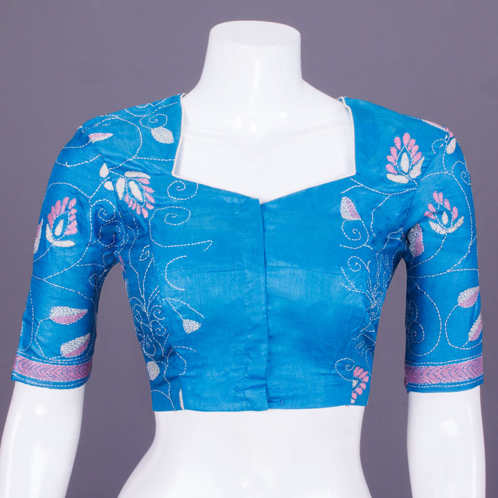 Blue Kantha Embroidered Tussar Blouse 10069587