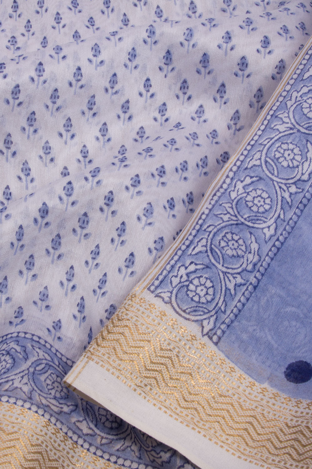 Blue Sanganeri Printed Silk Cotton Saree 10068563