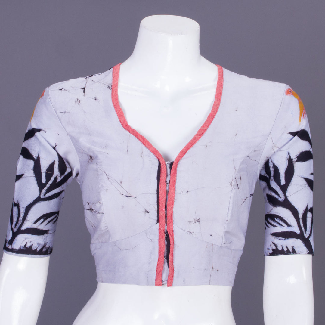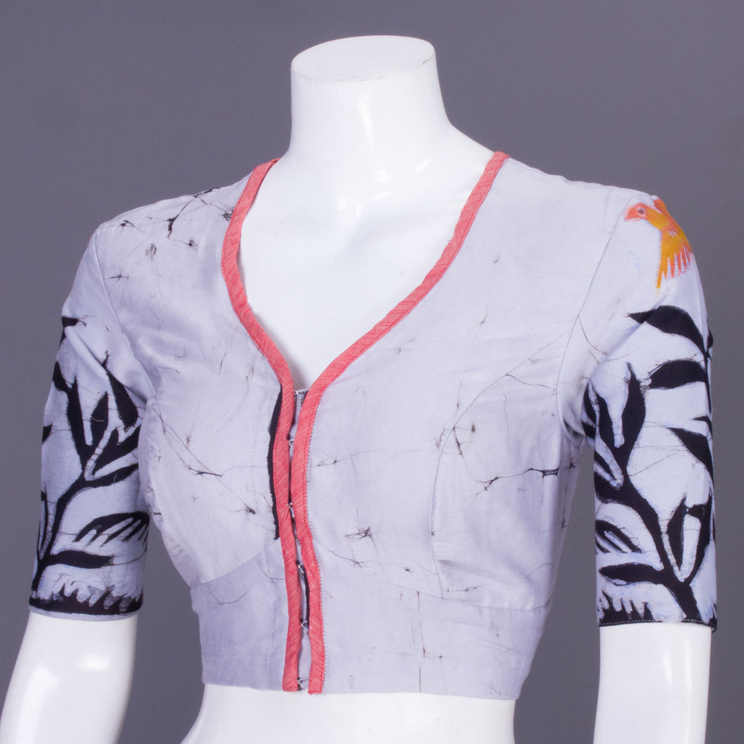 Cloud Grey Batik Handpainted Cotton Blouse 10070218