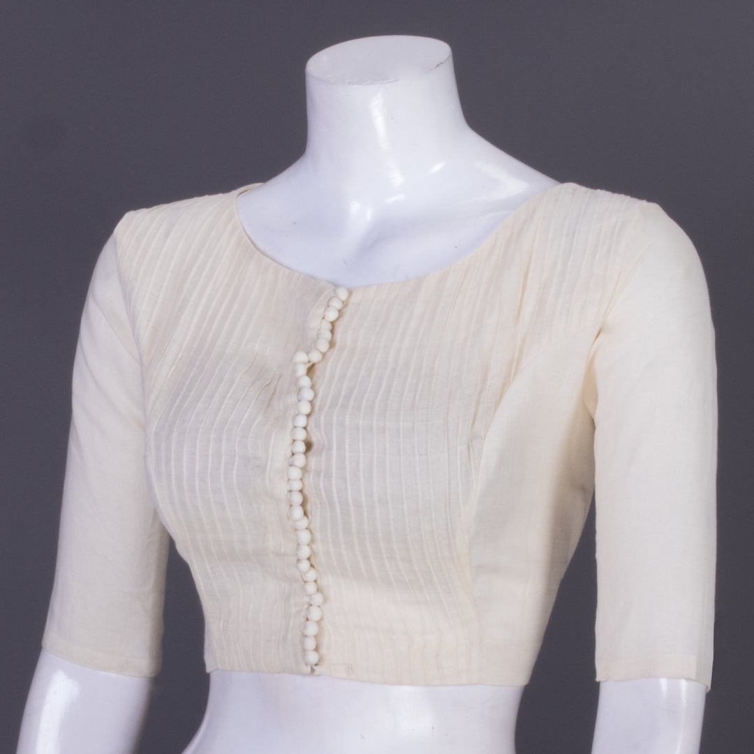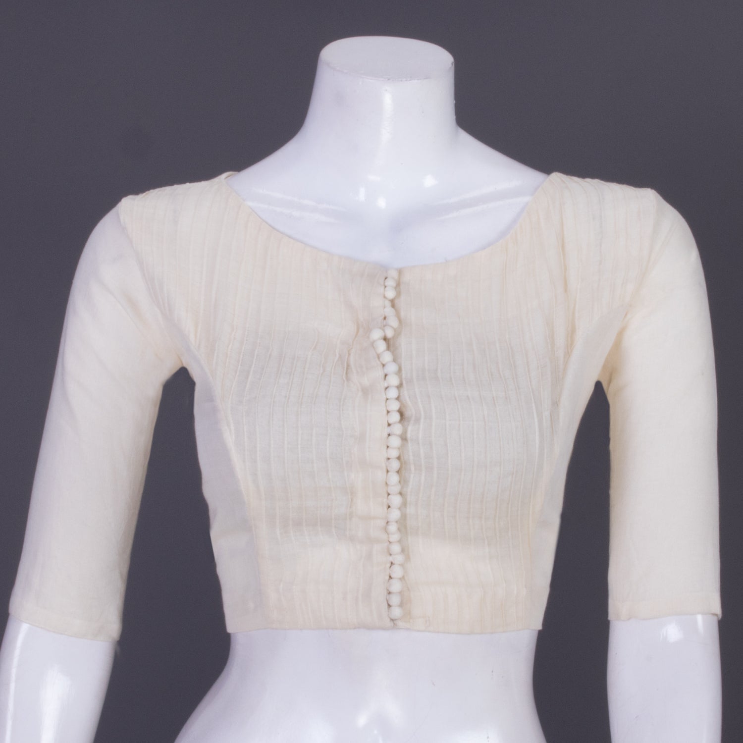 Passionately believe in the value of this unique Cream Handloom Cotton Blouse! Made with a pin tuck design and accentuated by beautiful Boondhi Buttons, this stylish accessory is the perfect match for any handloom saree. Experience the craftsmanship and elegance of handloom with this must-have addition to your wardrobe.