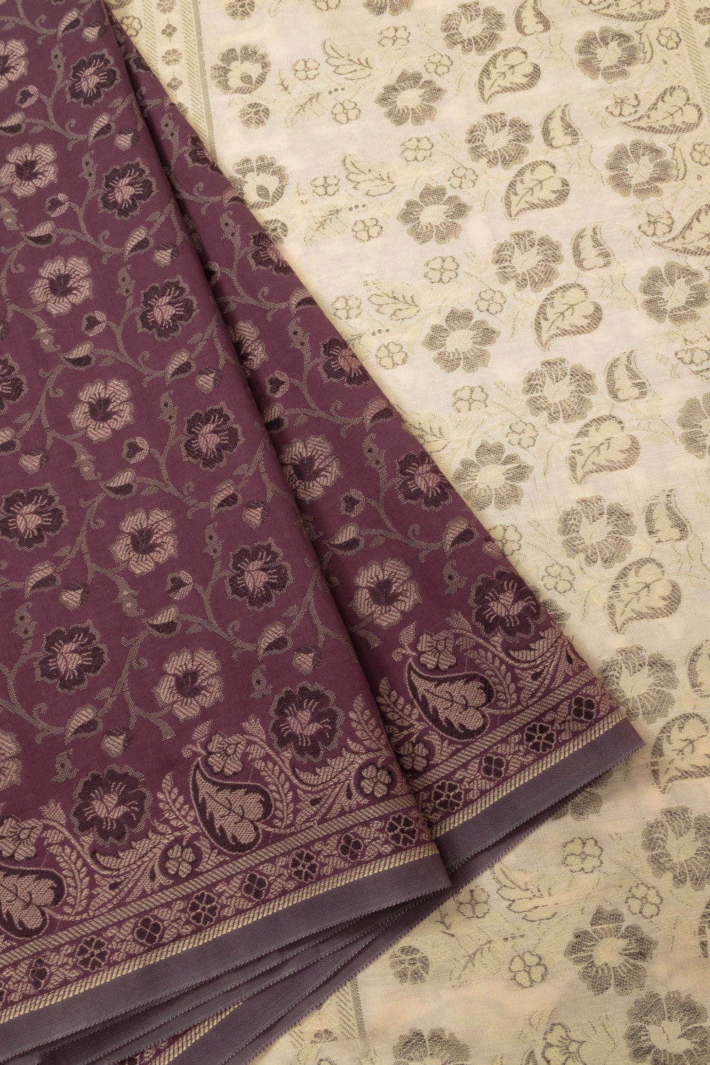 Dark Wine Handloom Himroo Silk Cotton Saree 10065733