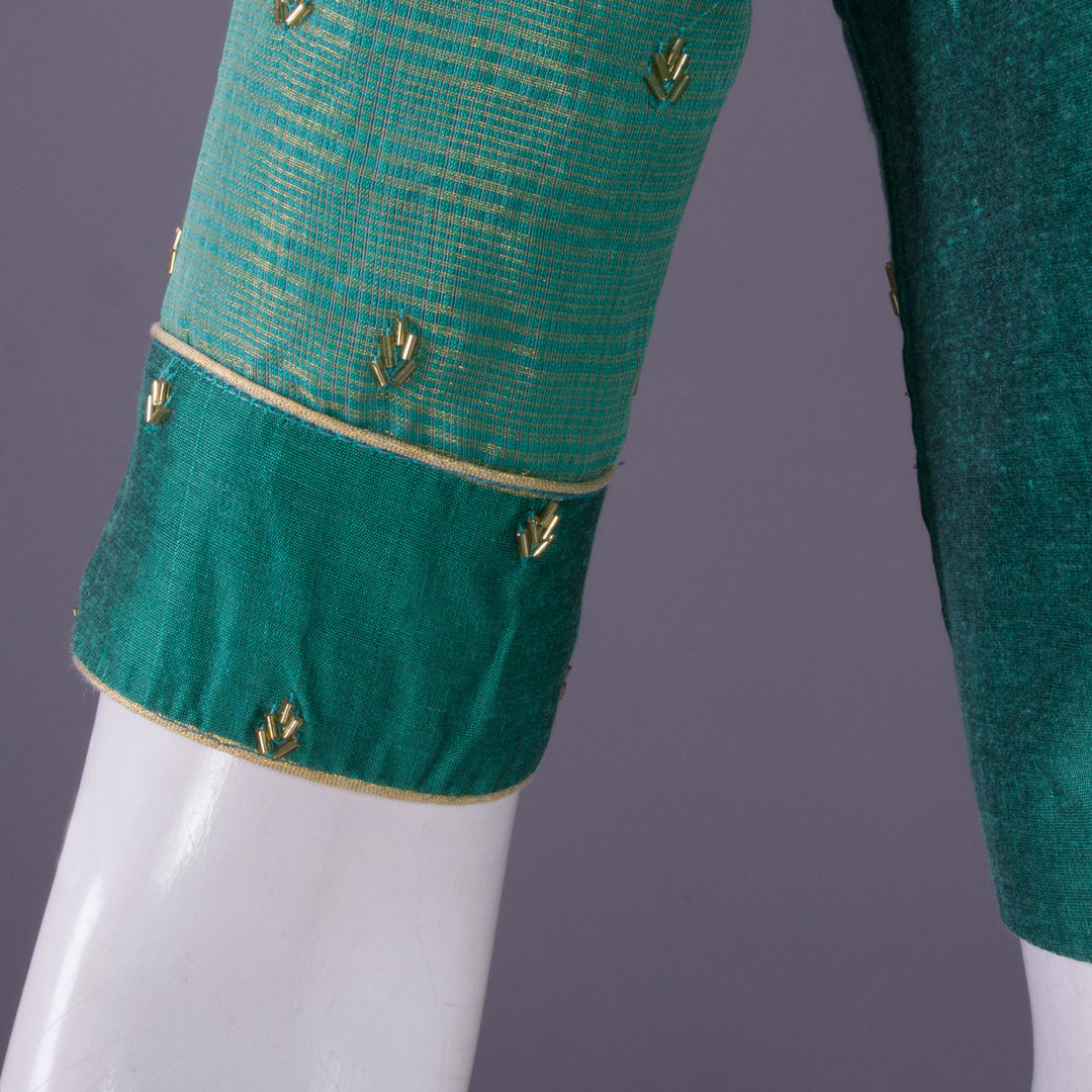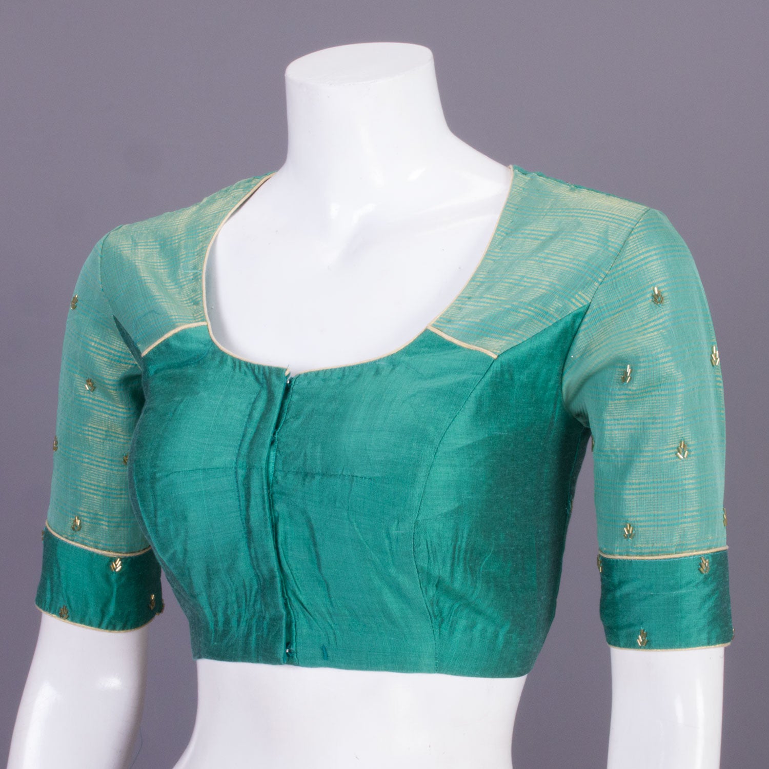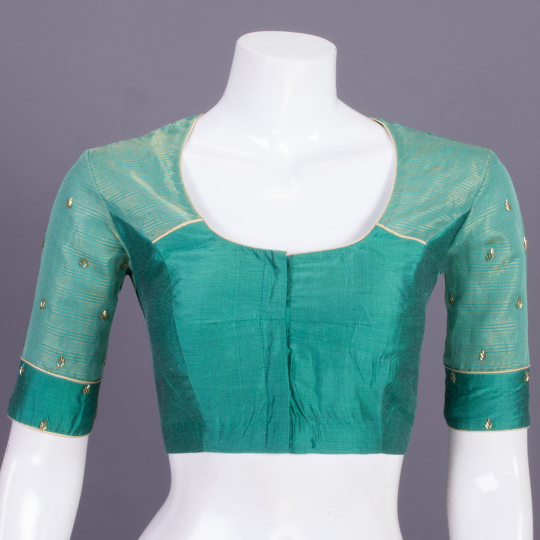 Green Aari Embroidered Chanderi Silk Cotton Blouse 10068928