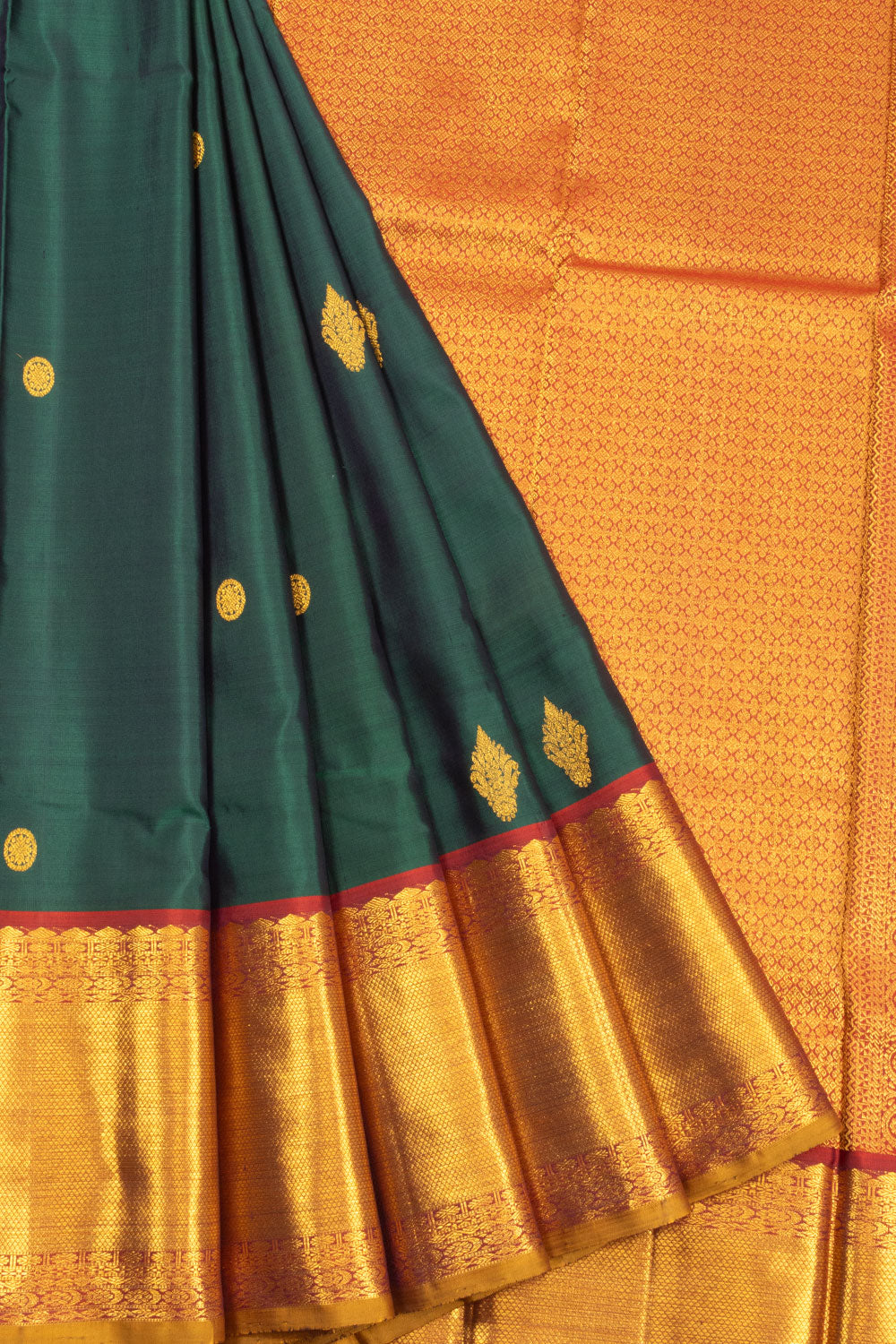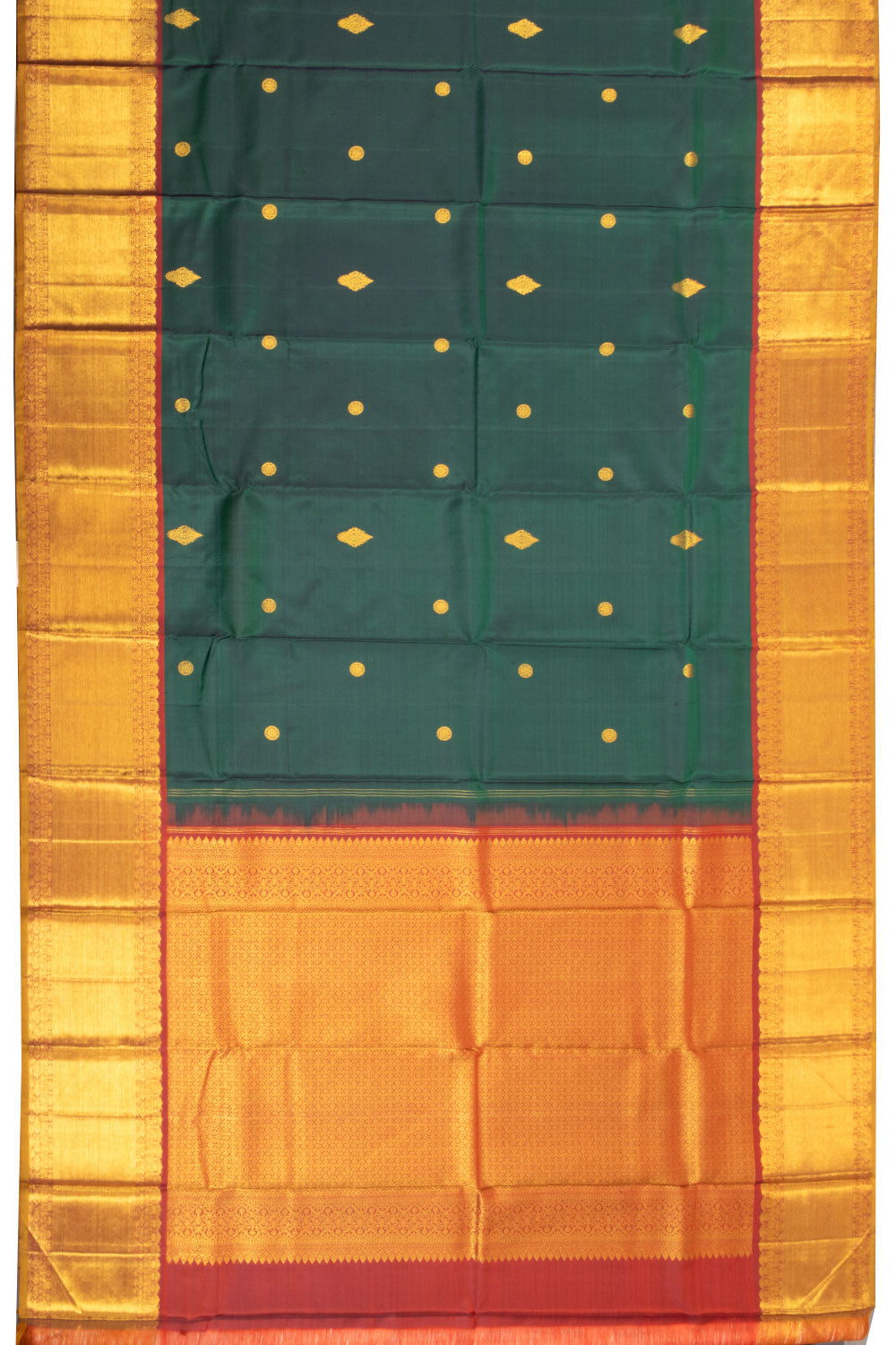 Indulge in luxury and tradition with our Green Bridal Kanjivaram Silk Saree! Handwoven with the finest silk, this saree showcases an elegant green color that will make any bride stand out. Perfect for weddings and special occasions, this saree is a must-have for any woman looking for timeless beauty and sophistication. Add this stunning piece to your wardrobe today!