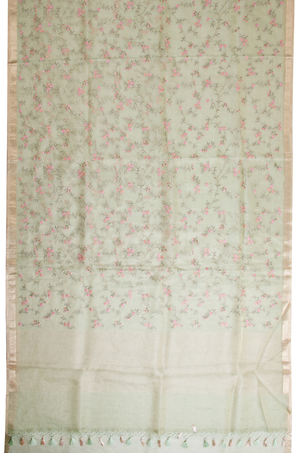Green Embroidered Pure Silk Tissue Organza Saree 10065755