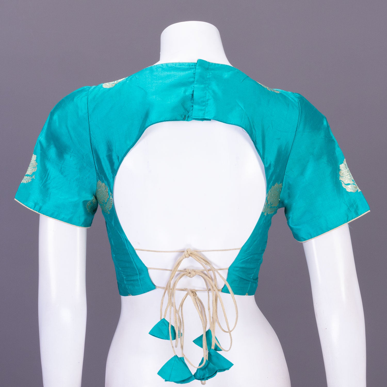 Green Handcrafted Banarasi Silk Blouse with Padding. Created from a luxurious Banarasi silk, this blouse is perfect for adding elegance to any look.