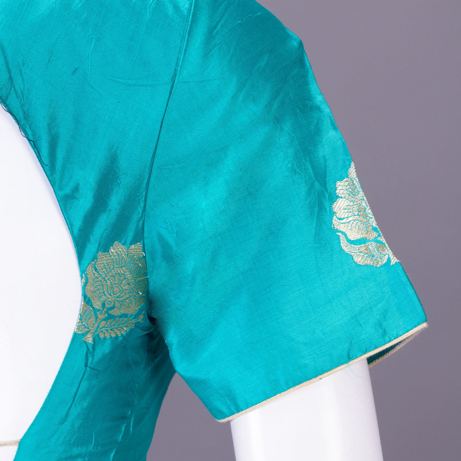 Green Handcrafted Banarasi Silk Blouse 10064836