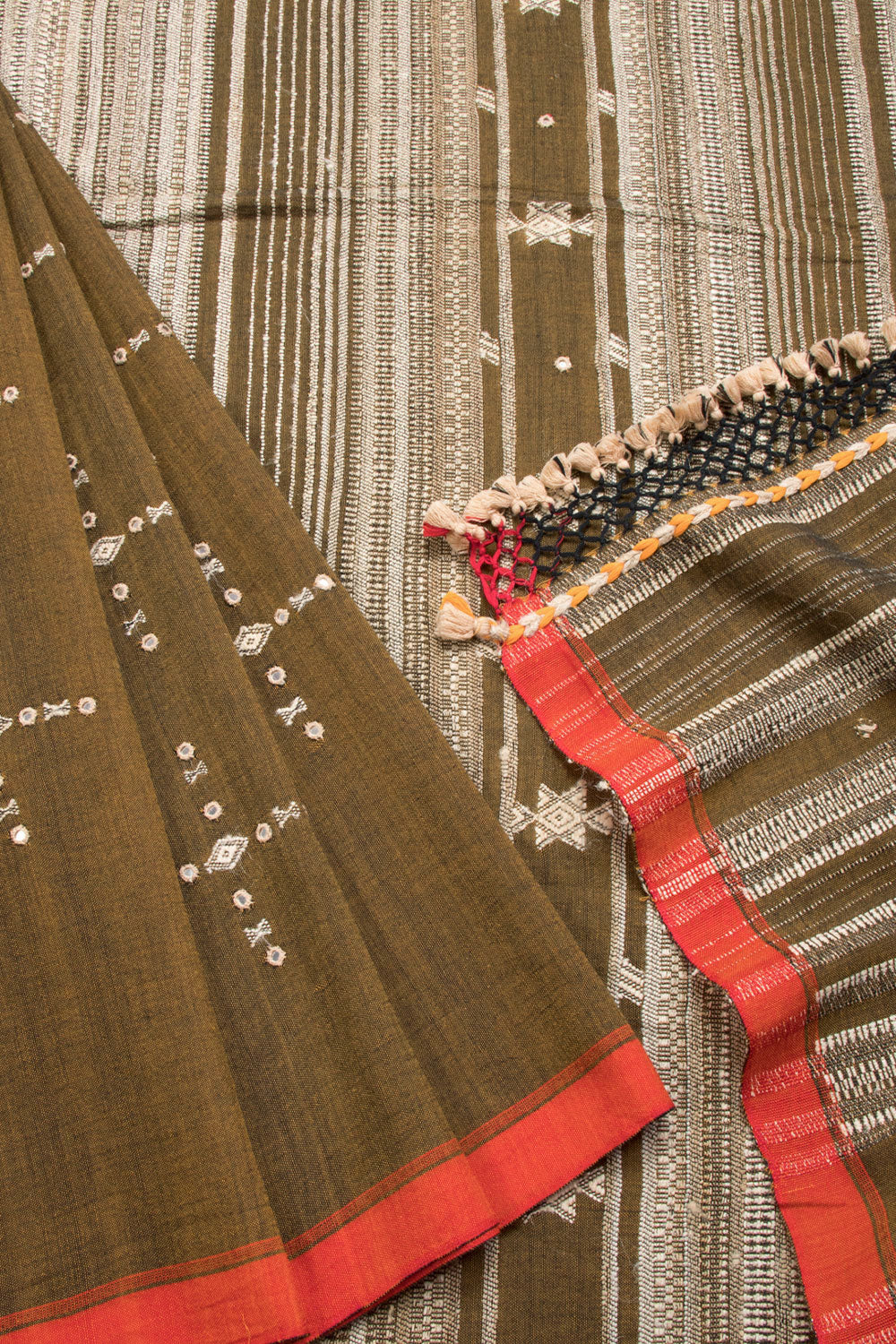 Green Handloom Bhujodi Tussar Cotton Saree 10069840
