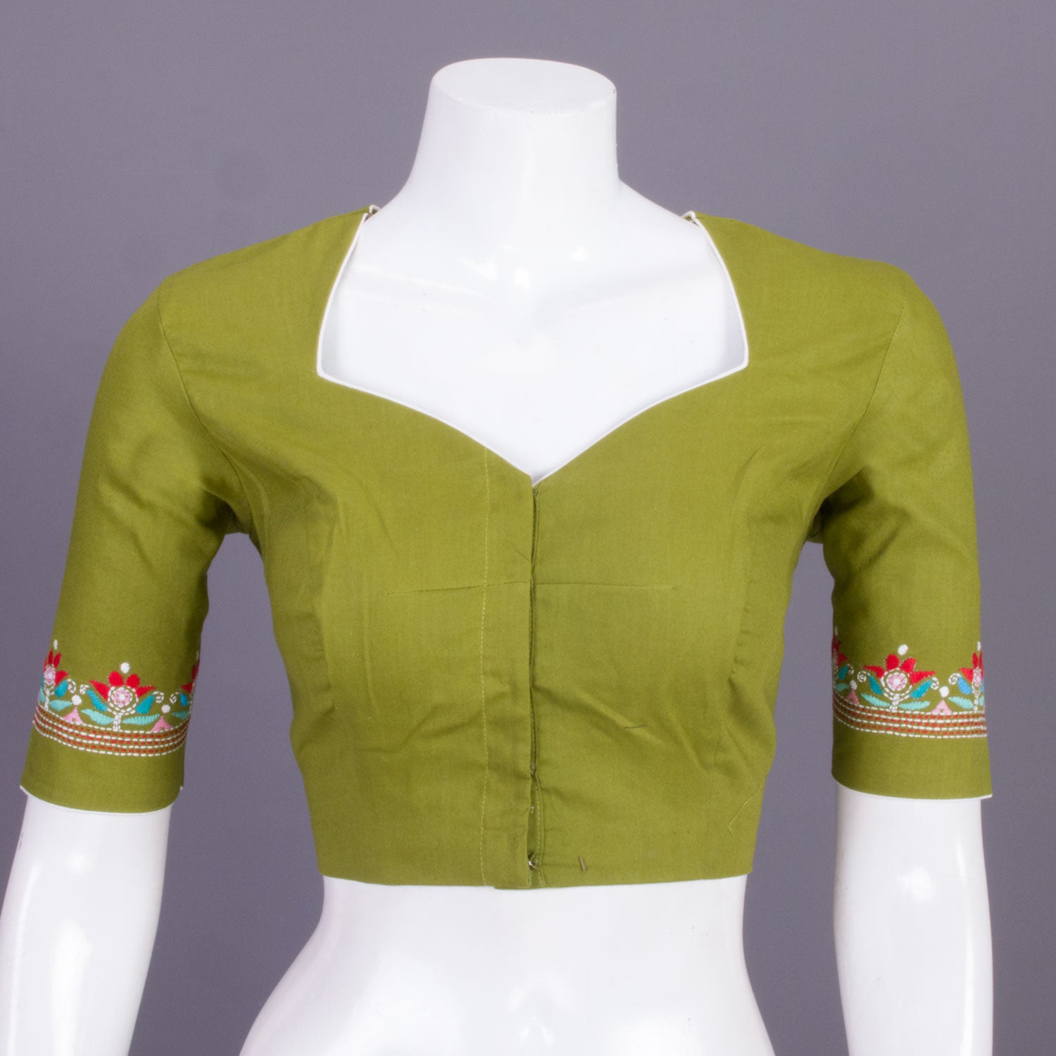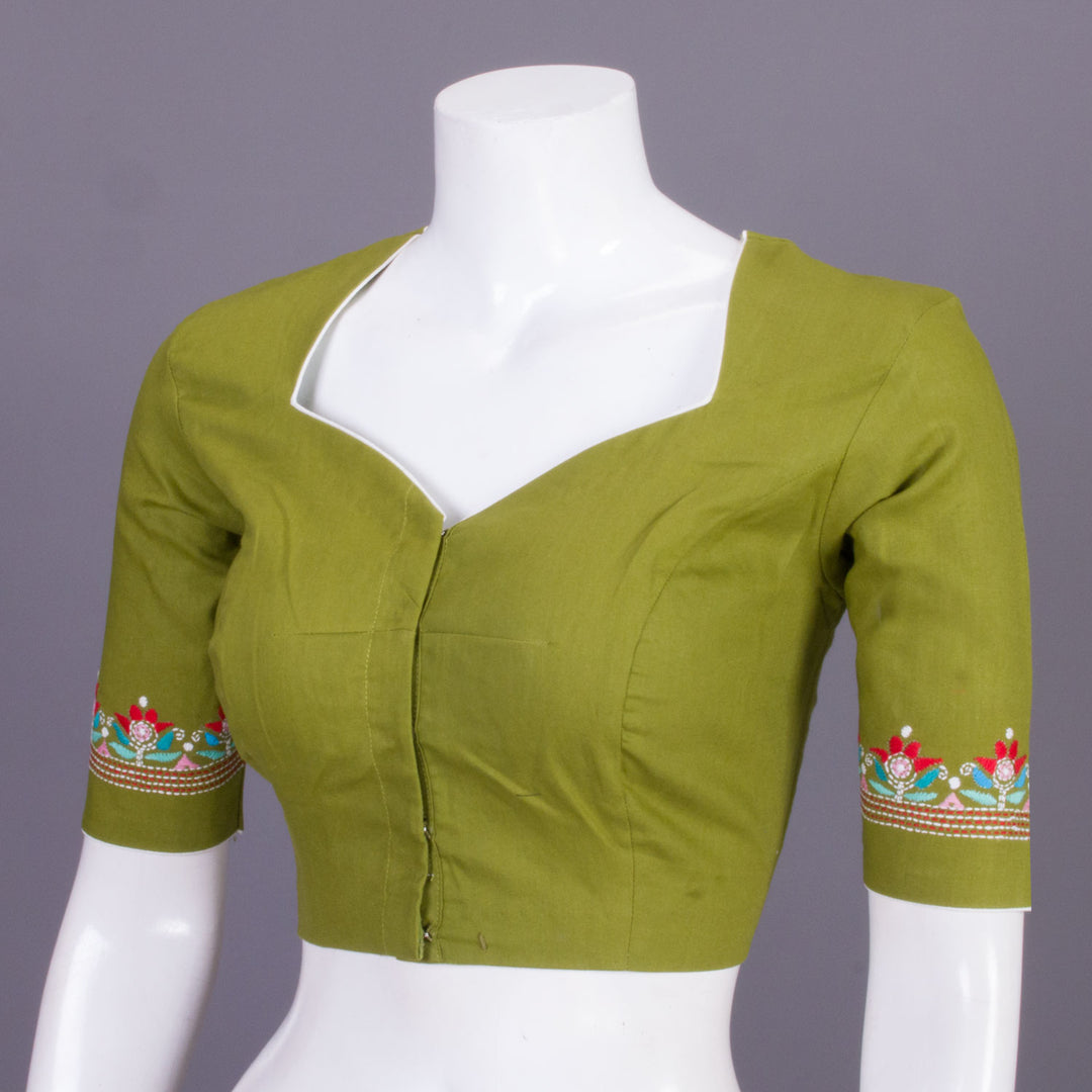 Experience a wardrobe transformation with our stunning Green Kantha Embroidered Cotton Blouse - beautifully designed with a floral pattern and embellished with mirrors on the back and sleeves. Elevate your fashion and make an empowering statement by pairing it with a handloom saree. Don't miss out on this exquisite addition to your collection!