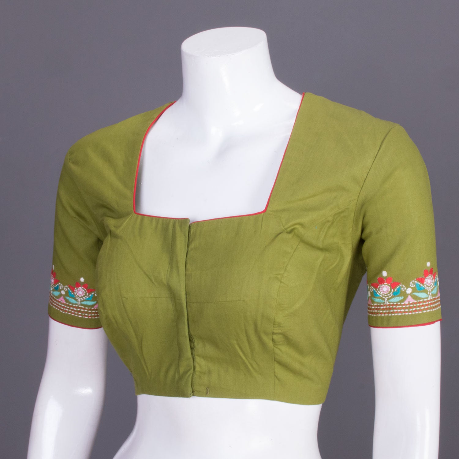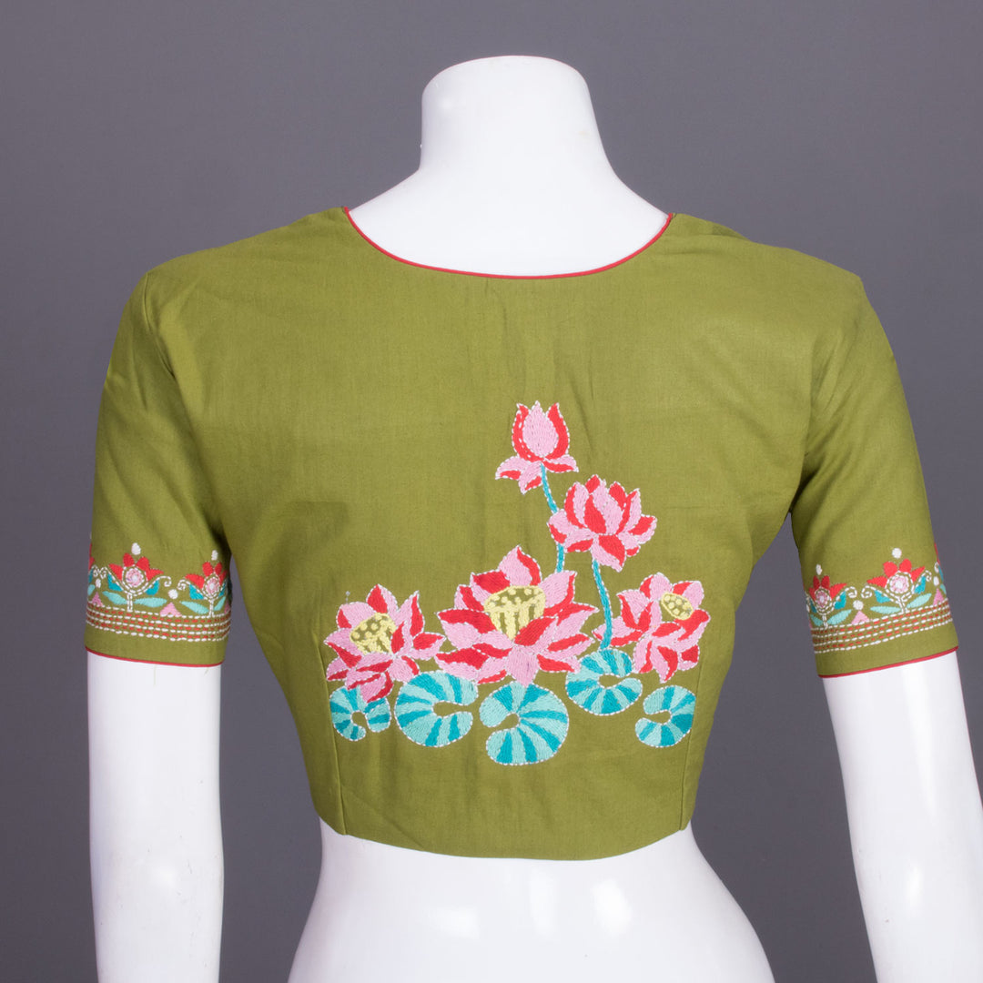 Indulge in the rich and vibrant colors of our Green Kantha Embroidered Cotton Blouse! Featuring exquisite kantha embroidery and crafted from soft cotton, this blouse adds a touch of elegance to any outfit. Perfect for any occasion, it's a must-have addition to your wardrobe. Elevate your style with this beautiful blouse today!