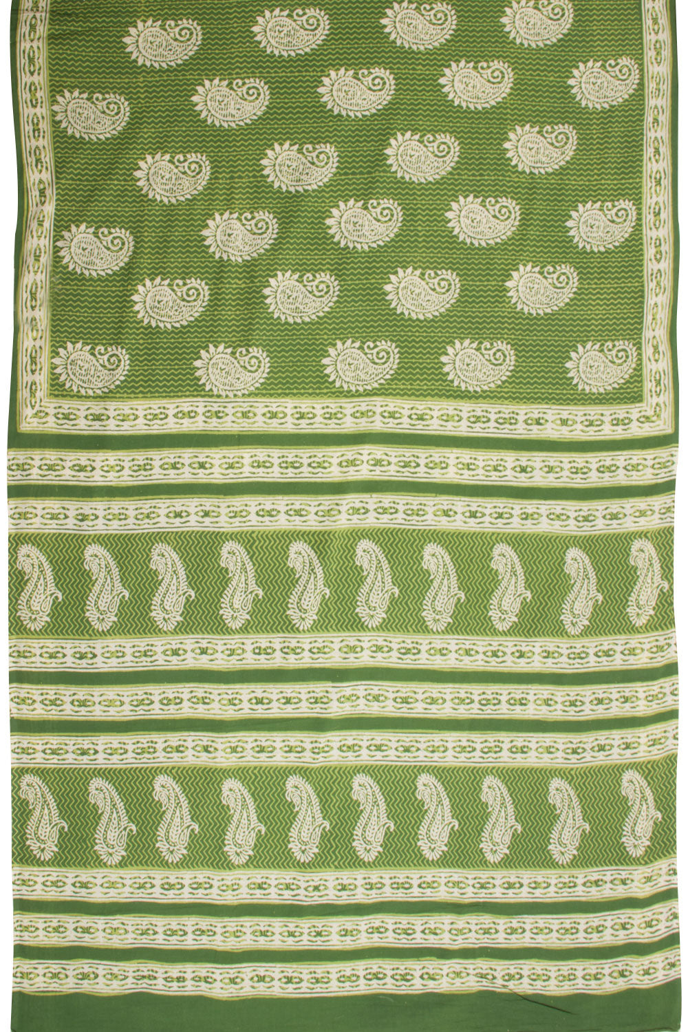 Green Vanaspathi Hand Block Printed Mulmul Cotton Saree 10068579