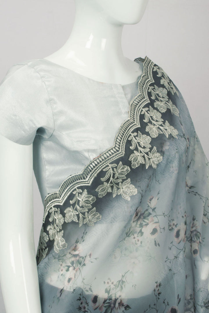 Grey Embroidered Organza Saree Your look will be elevated with this beautiful Grey Floral printed Organza Saree. Crafted with superior quality fabric, this saree offers long lasting comfort and timeless style.