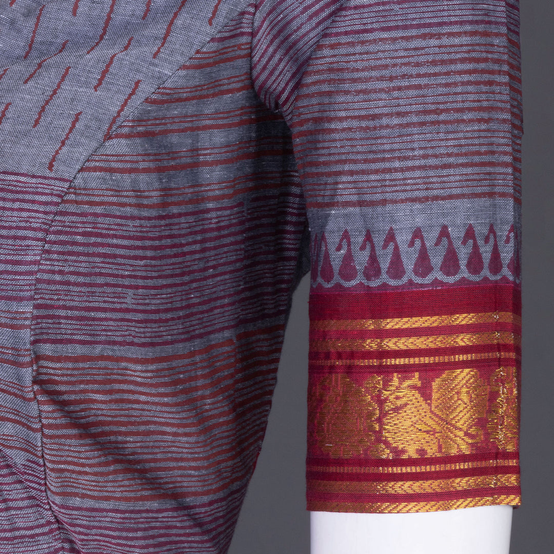 Experience the comfort and style of our Grey Handblock Printed Cotton Blouse. Made with high-quality cotton, this blouse is perfect for everyday wear. The unique handblock print adds a touch of elegance and sophistication. Stay comfortable and fashionable all day long with this must-have piece in your wardrobe!