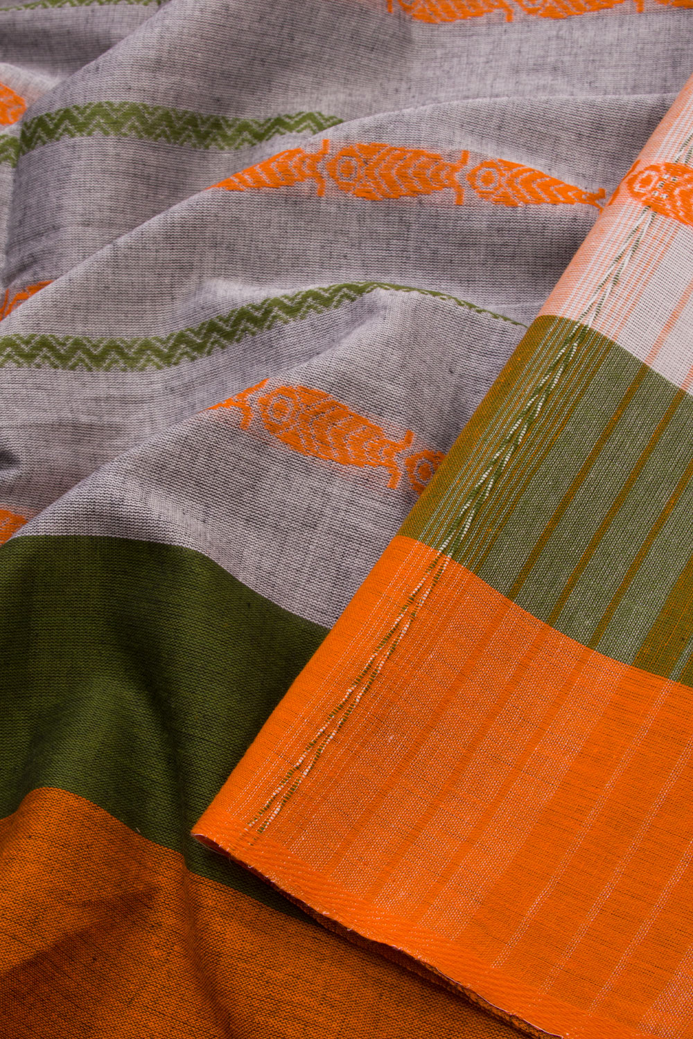 Grey Handloom Dhaniakhali Cotton Saree Without Blouse 10070953