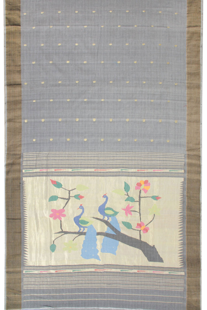 Grey Handloom Paithani Cotton Saree with Silk Pallu 10068437