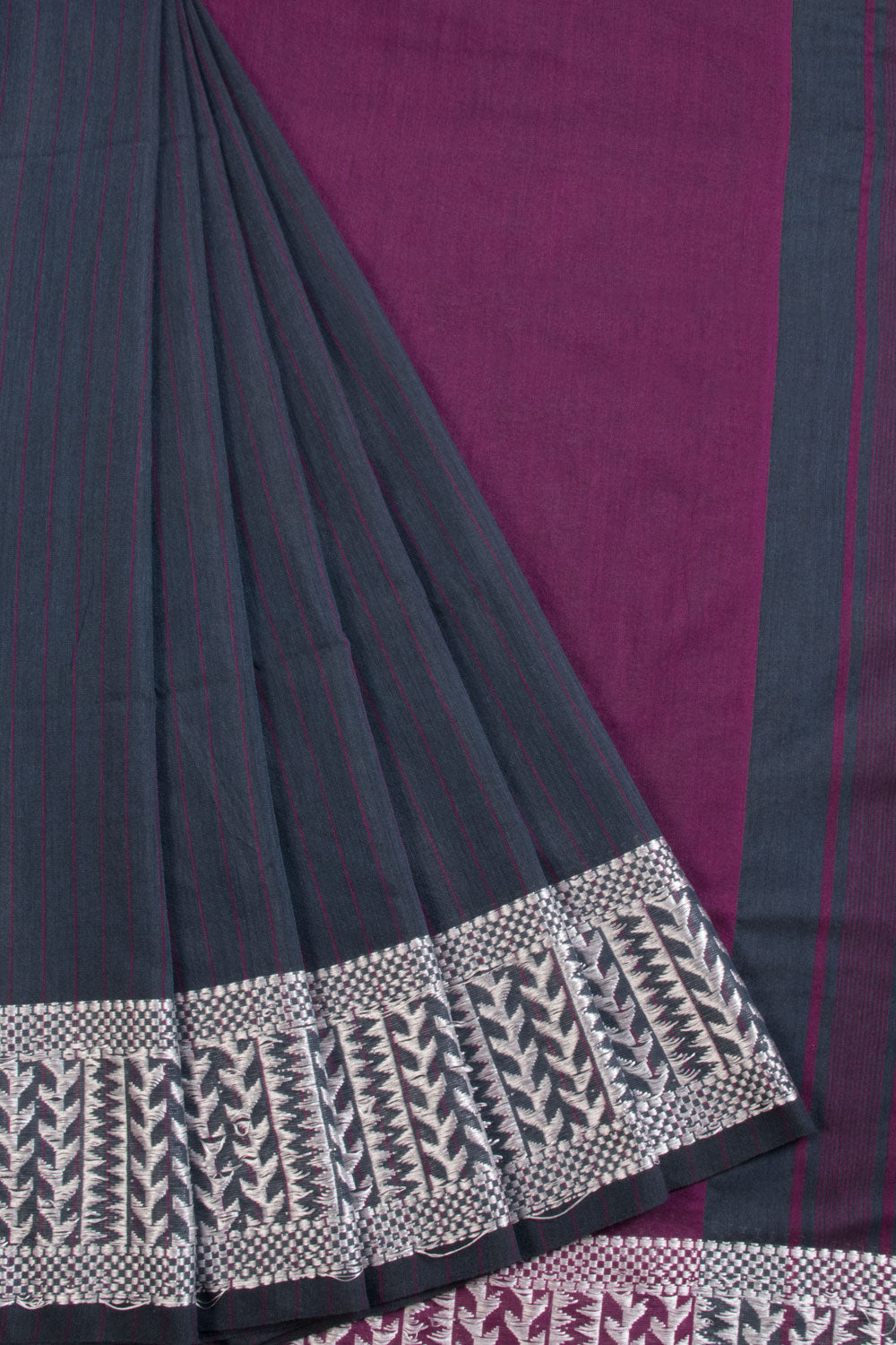 Grey Shantipur Tant Bengal Cotton Saree 10068795