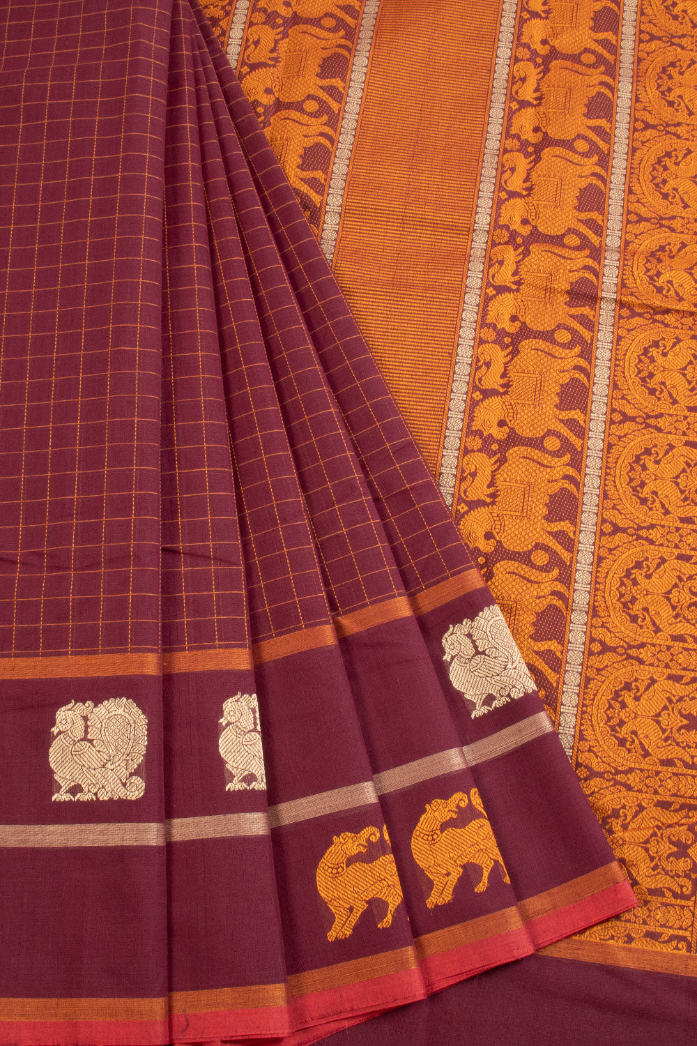 Maroon Kanchi Cotton Saree 10068669