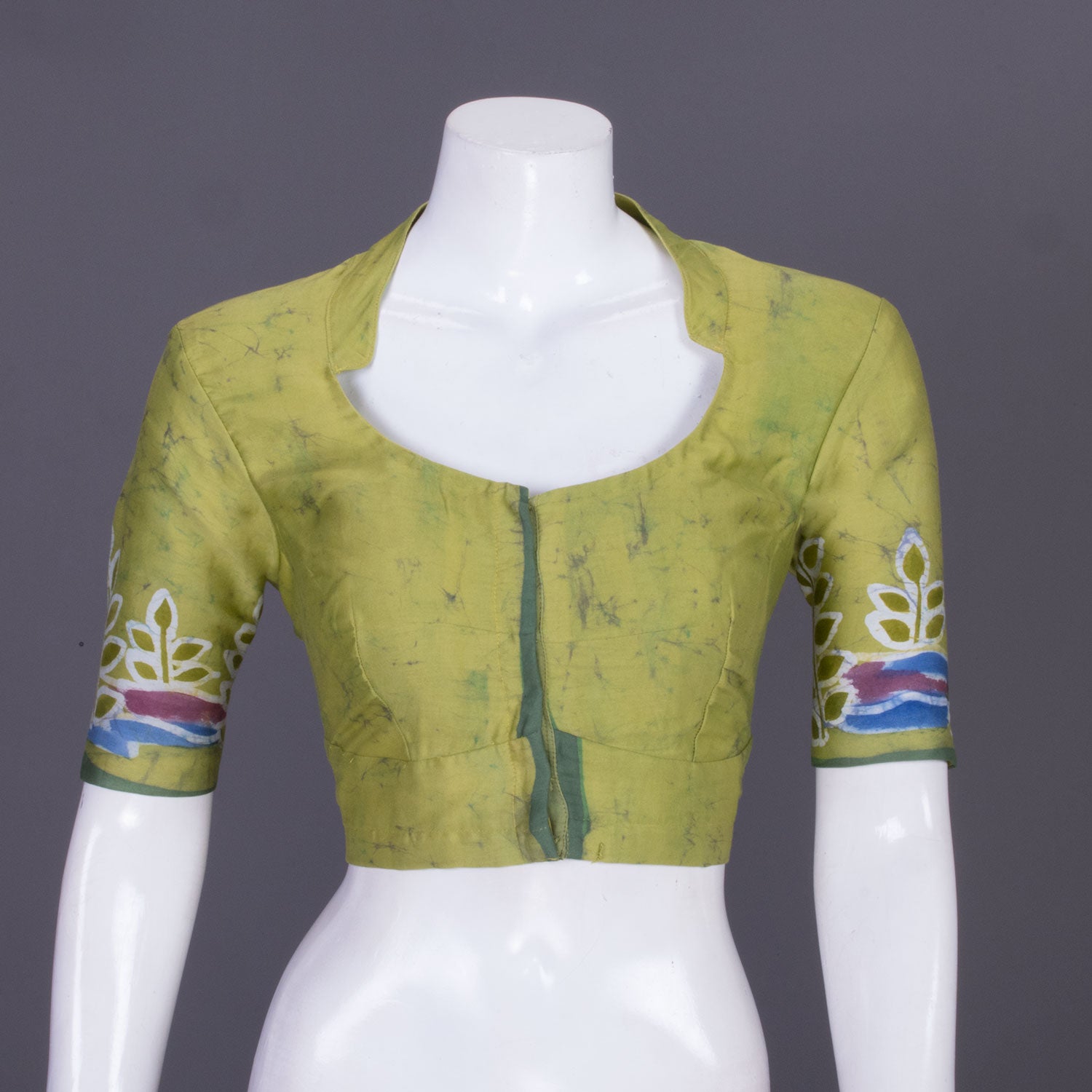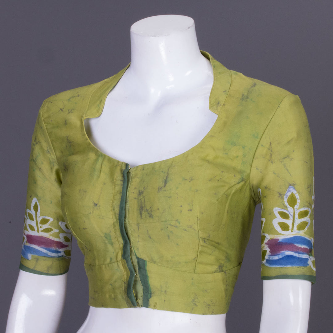 Moss Green Batik Handpainted Cotton Blouse 10070221