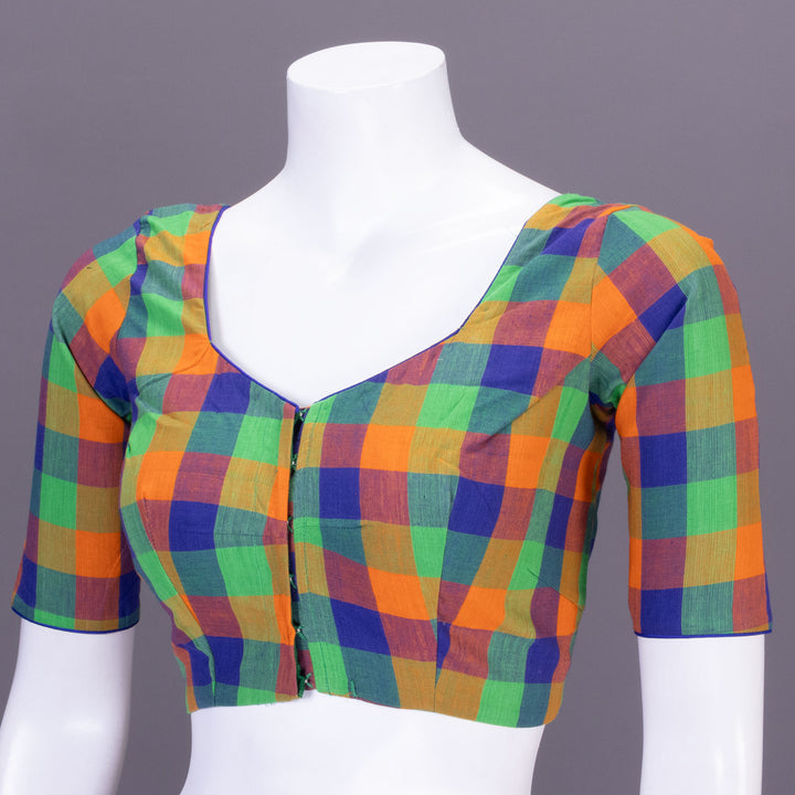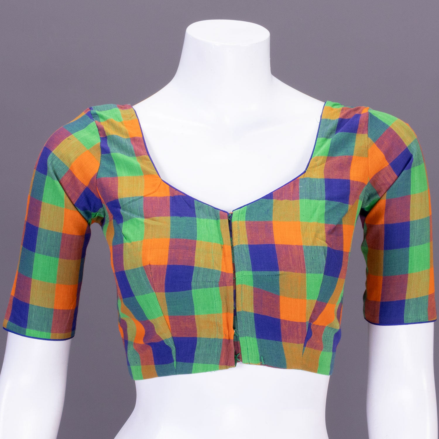 This Multicolour Chettinad Cotton Blouse is made from high-quality cotton, ensuring maximum comfort and breathability. The vibrant multi-color pattern adds a touch of traditional charm to any outfit. Perfect for everyday wear or special occasions, it is a versatile addition to any wardrobe.