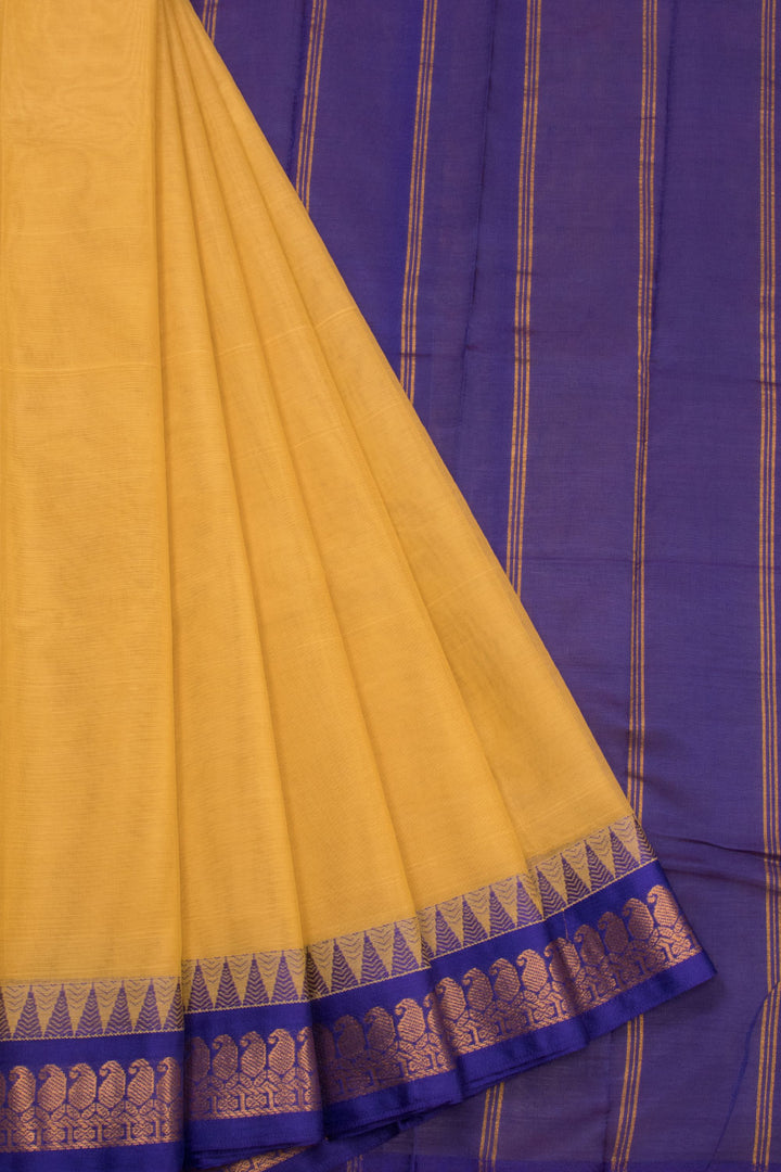 Mustard Yellow Handloom Gadwal Kuttu Cotton Saree Without Blouse 10071205