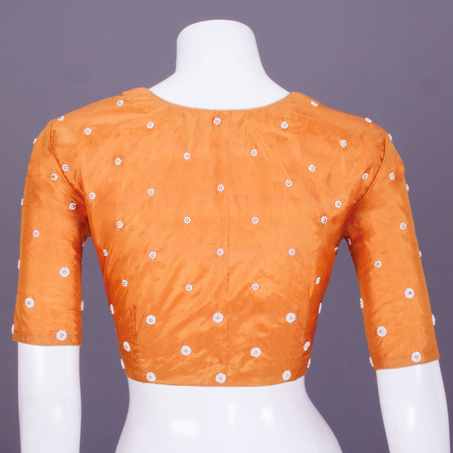 Introducing our Orange Aari Embroidered Silk Blouse! Made with luxurious silk and intricate Aari embroidery, this blouse adds a touch of elegance to any outfit. Elevate your style with this unique and versatile piece. Perfect for a day at the office or a night out on the town. Order now and feel confident and stylish!