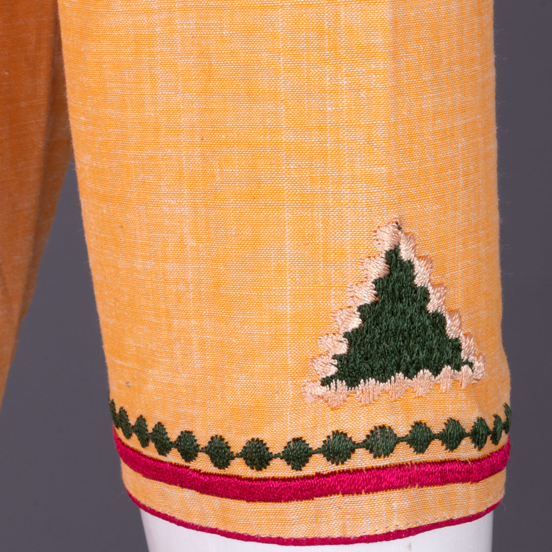 Introducing our Orange Embroidered Cotton Blouse! Made from high-quality cotton, this blouse features beautiful embroidered detailing in a vibrant orange color. Perfect for any occasion, it will add a pop of color and style to your wardrobe. Upgrade your look with this versatile and eye-catching piece.