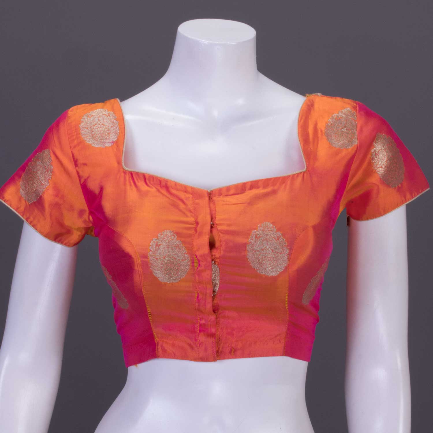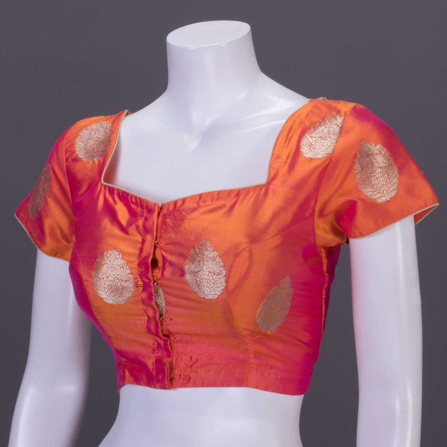 Orange Shot Pink Banarasi Silk Blouse 10064839