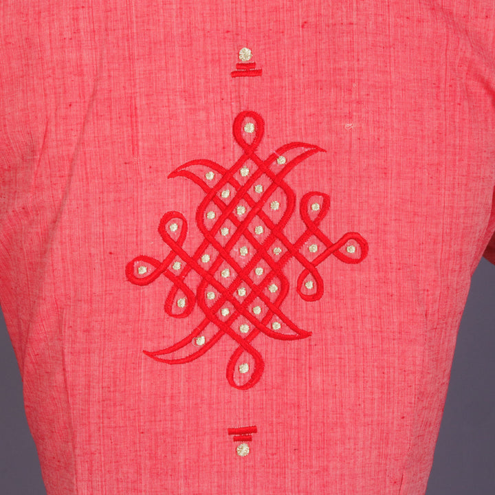 Peach Embroidered Mangalgiri Cotton Blouse 10068159