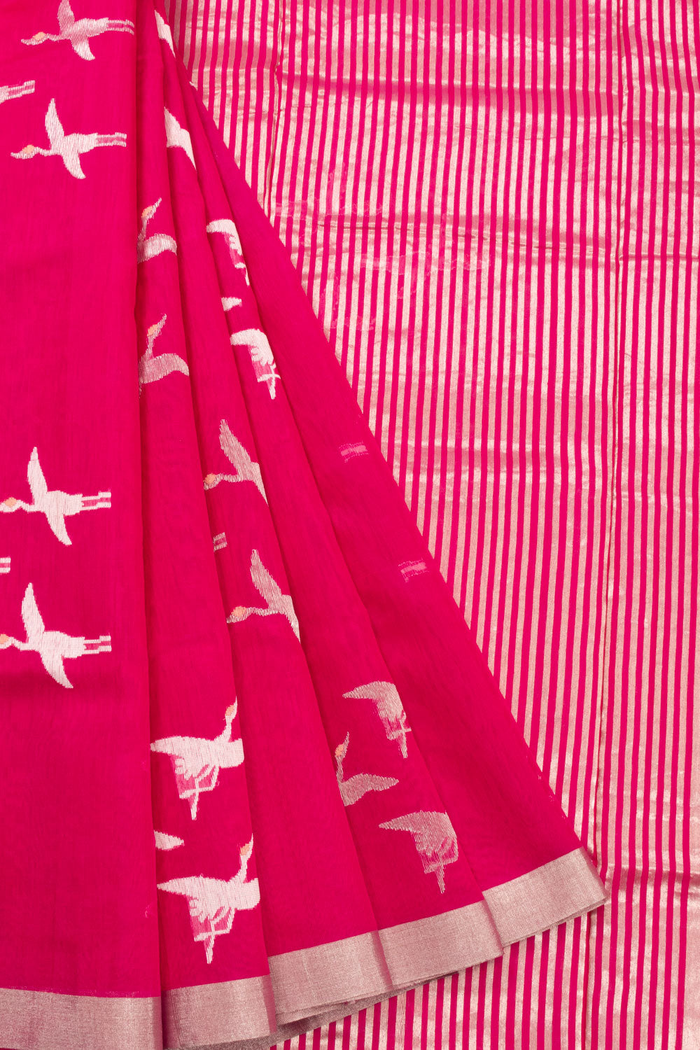 Upgrade your saree collection with our stunning Pink Handloom Chanderi Silk Cotton Saree! Made with the finest quality silk cotton, this saree exudes elegance and comfort. Perfect for any occasion, this saree will surely make you stand out and feel confident. Elevate your style with our handloom saree today!