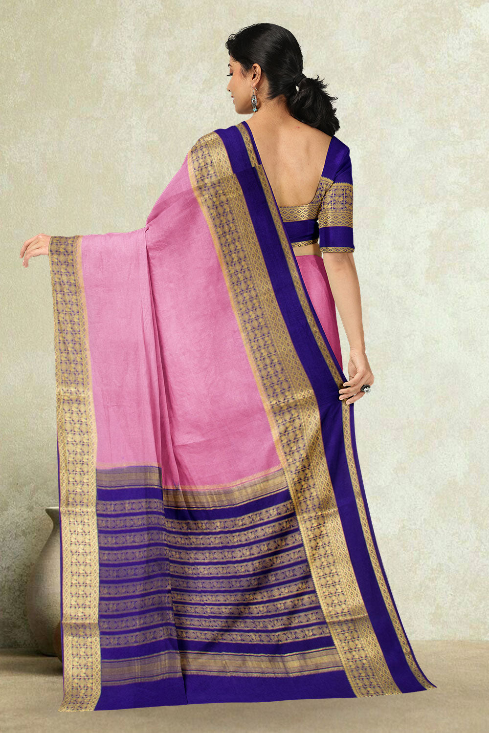 Add a fresh and elegant touch to your wardrobe with this Pink Mysore Crepe Silk Saree. Crafted from soft, flowing crepe silk, it offers a graceful drape and comfortable fit. The delicate pink shade brings a feminine charm, making it perfect for festive occasions and special events. Embrace timeless style and effortless sophistication with this beautiful saree.