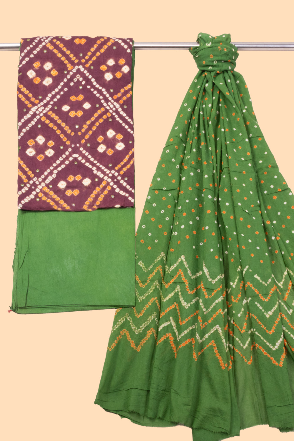 Plum Violet Bandhani Cotton 3-Piece Salwar Suit Material 10069624