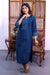 Blue Hand Block Cotton Kurta with Embroidered Yoke 10062688