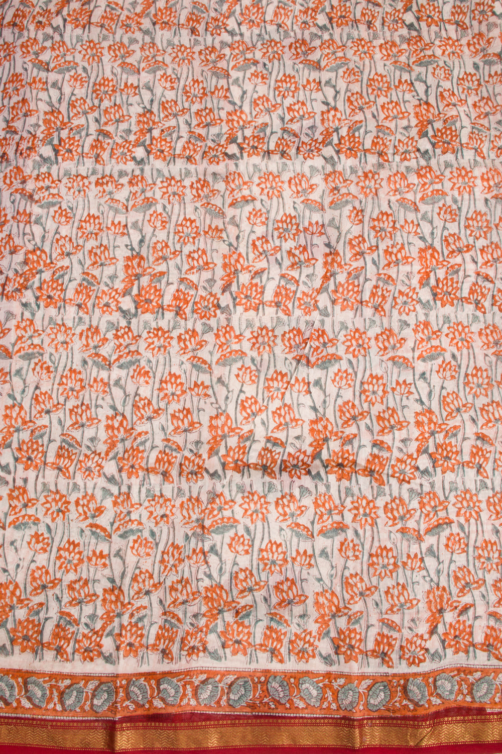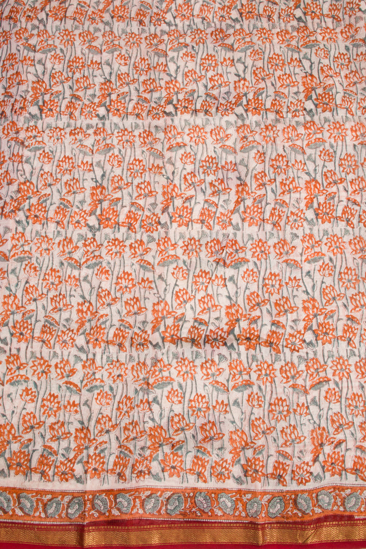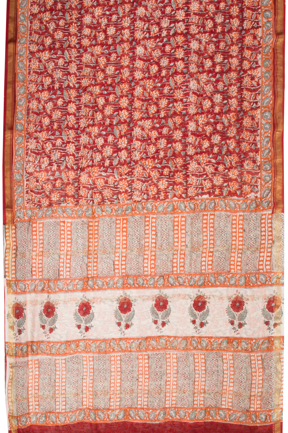 Red Sanganeri Printed Silk Cotton Saree 10068561