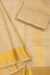 Drape yourself in timeless elegance with this stunning Sunkissed Beige Kanjivaram silk dhoti! Featuring classic 8 x 4 stripes that dance across the fabric, it's paired with a luxurious gold zari border that catches the light beautifully. The authentic Kanjivaram silk ensures a rich, lustrous finish that feels as divine as it looks. Comes complete with coordinating shirt material, so you're all set for weddings, festivals, or special celebrations. Pure sophistication wrapped in tradition!
