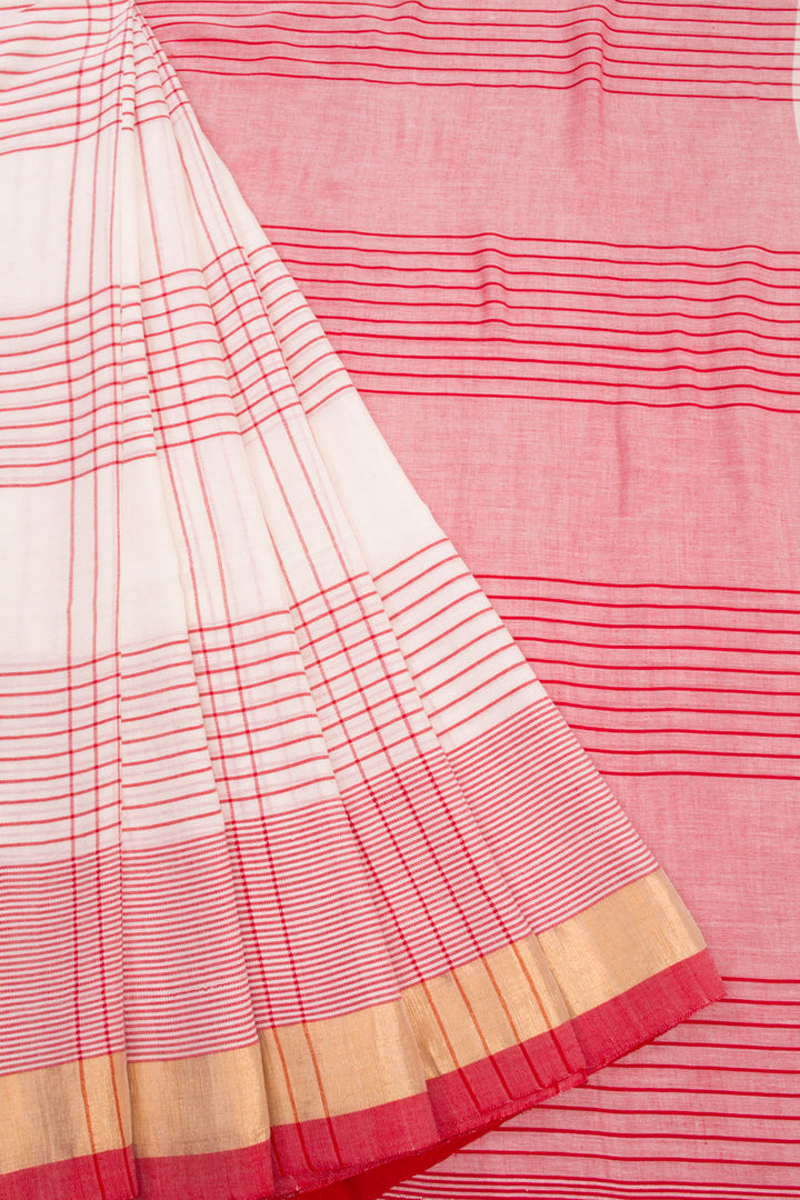 White Bengal Phulia Cotton Saree Zari Border 10069411