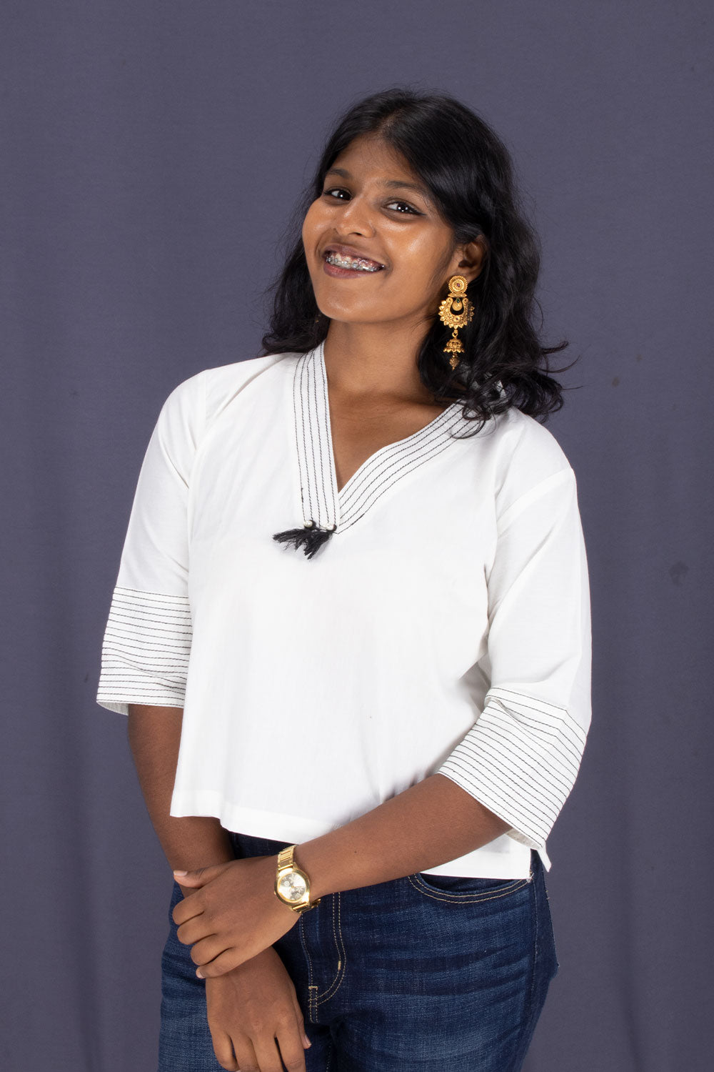 White Shawl Neck Cotton Crop Top Transform your outfit with ease thanks to the versatility of this White Shawl Neck Cotton Crop Top. Dress it up or down for any occasion, and enjoy the lightweight comfort of breathable cotton fabric.