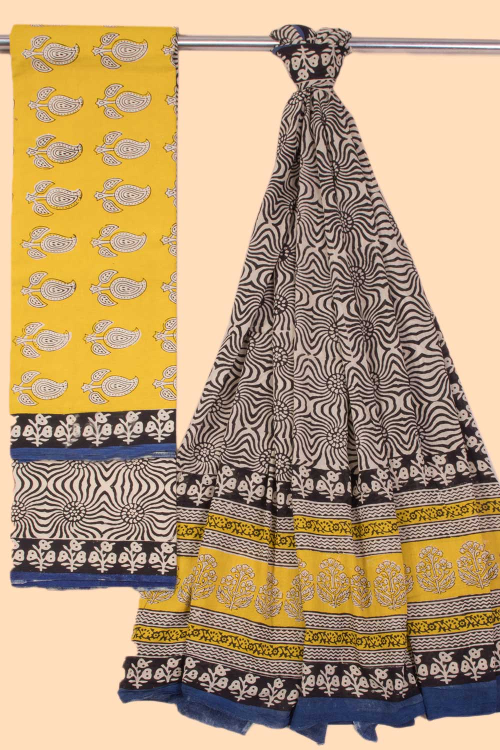 Yellow 3-Piece Mulmul Cotton Salwar Suit Material 10068601