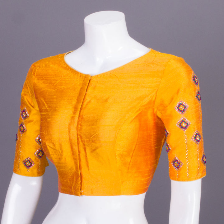 Yellow Aari Embroidered Tussar Silk Blouse 10068918