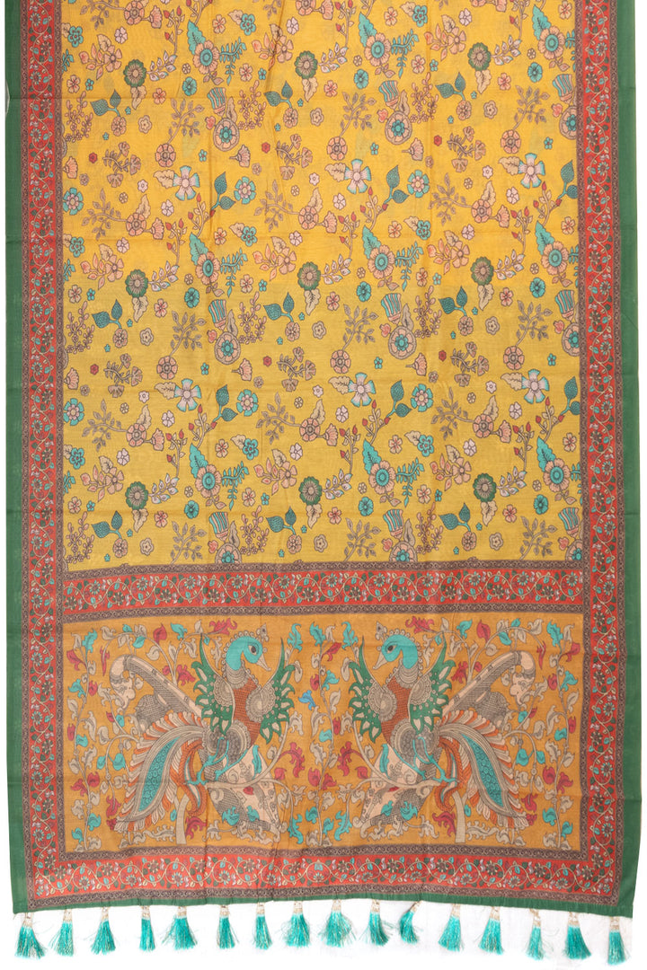 Yellow Kalamkari Print Malai Cotton Saree 10071176