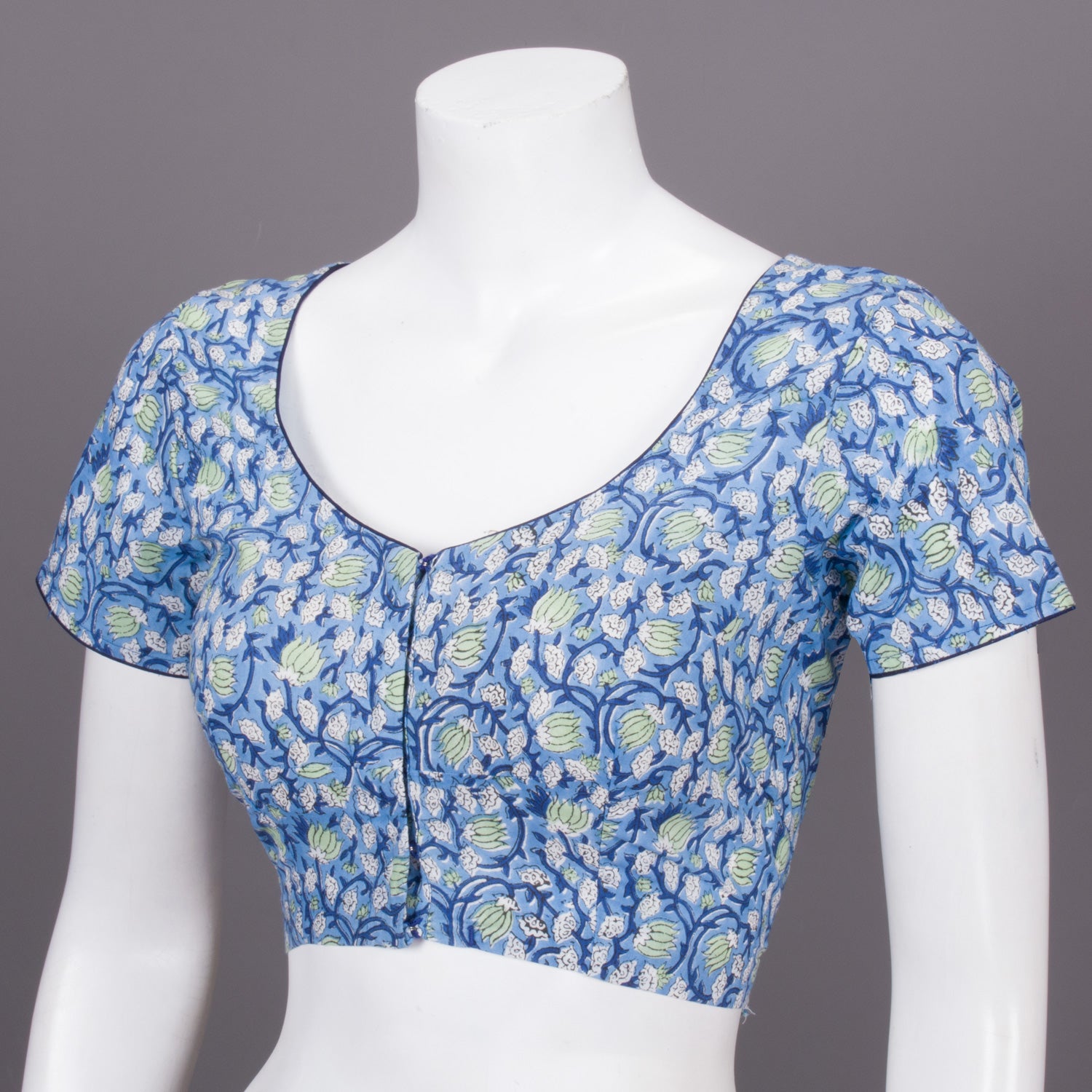 Blue Hand Block Printed Cotton Blouse 10073306