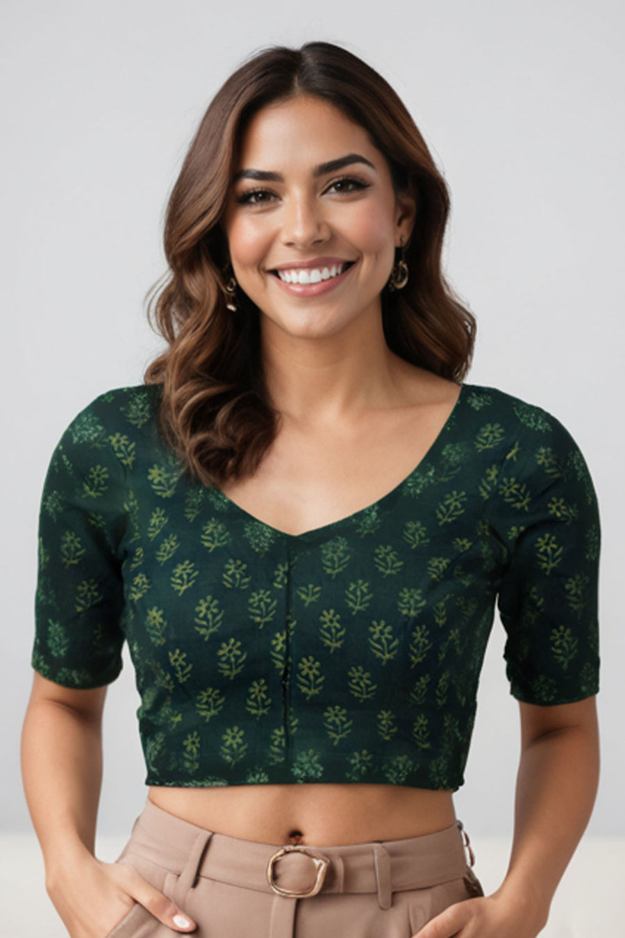 Celebrate nature's beauty in this vibrant Green Banarasi Katan Silk Blouse, a refreshing addition to your ethnic wardrobe. Crafted from authentic Katan silk, this blouse delivers the signature lustre and refined texture that Ba...