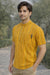 This yellow half-sleeve short kurta with a slim-fit design is made from soft cotton for comfort. It features traditional Ajrakh print with detailed patterns. The fabric is light and breathable, perfect for warm days. You can wear it for casual outings or daily use. It is good-looking, comfortable, and easy to wear.