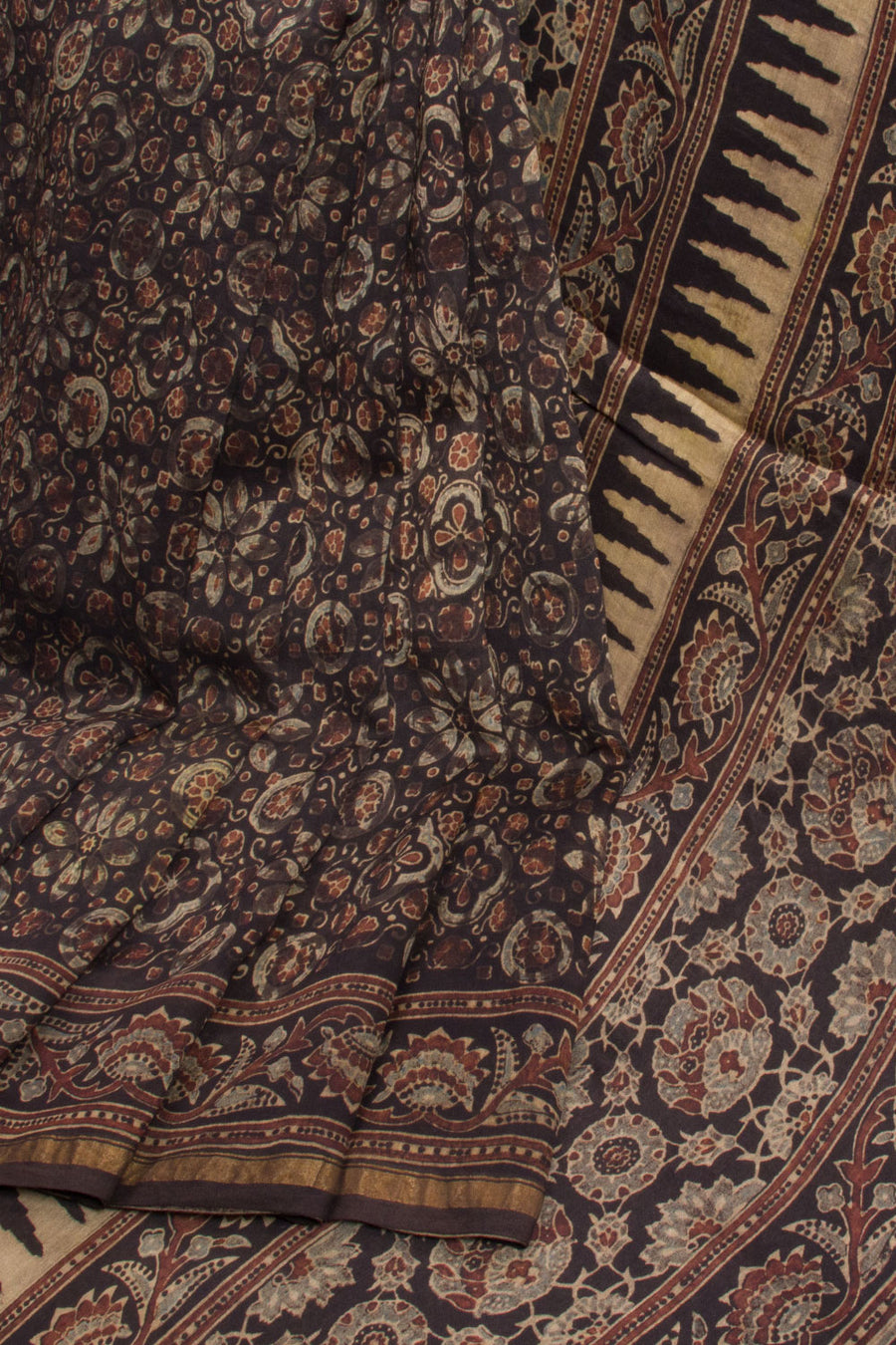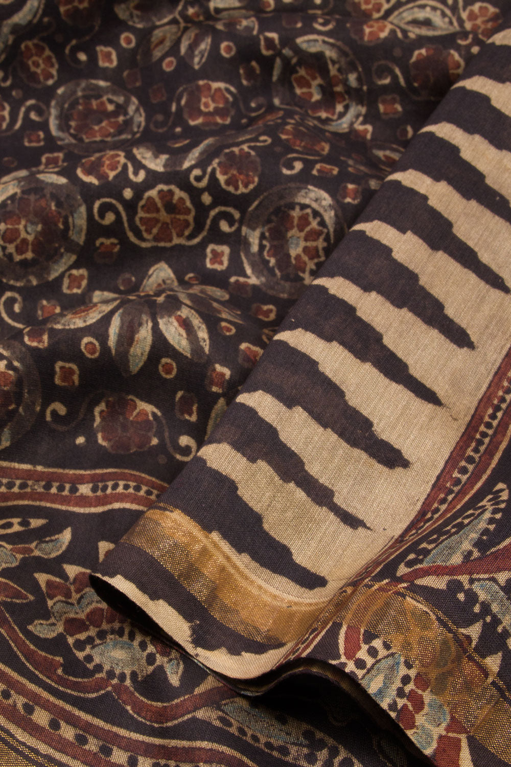 The perfect saree for any occasion! Not only does it have stunning floral motifs that will turn heads, but the added detail of pretty tassels gives it a unique touch. Elevate your style and feel confident in this black Ajrakh p...
