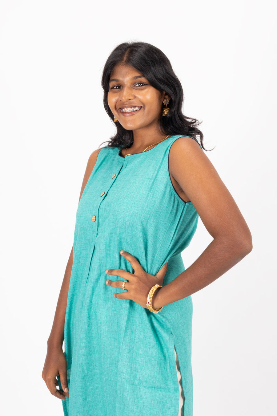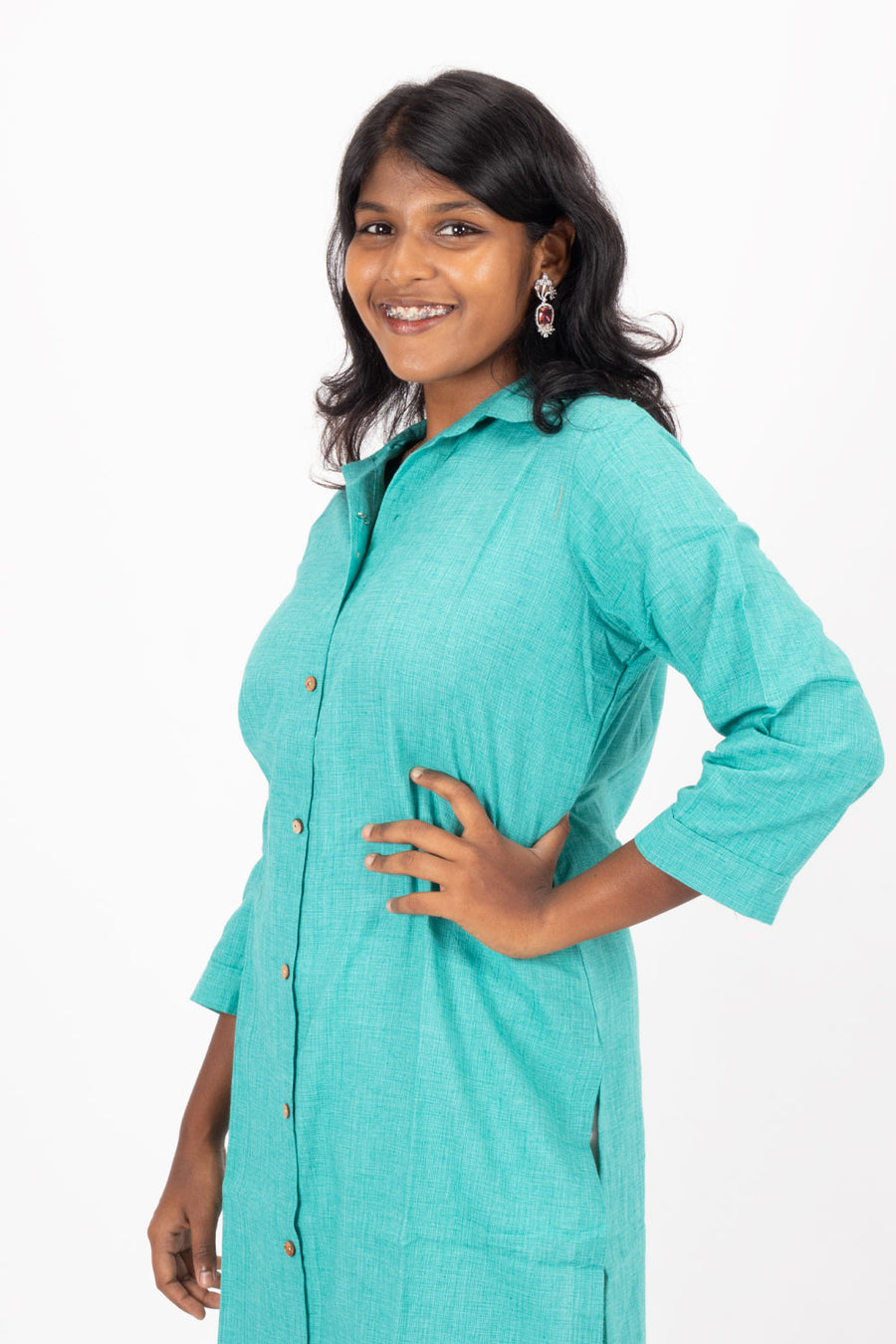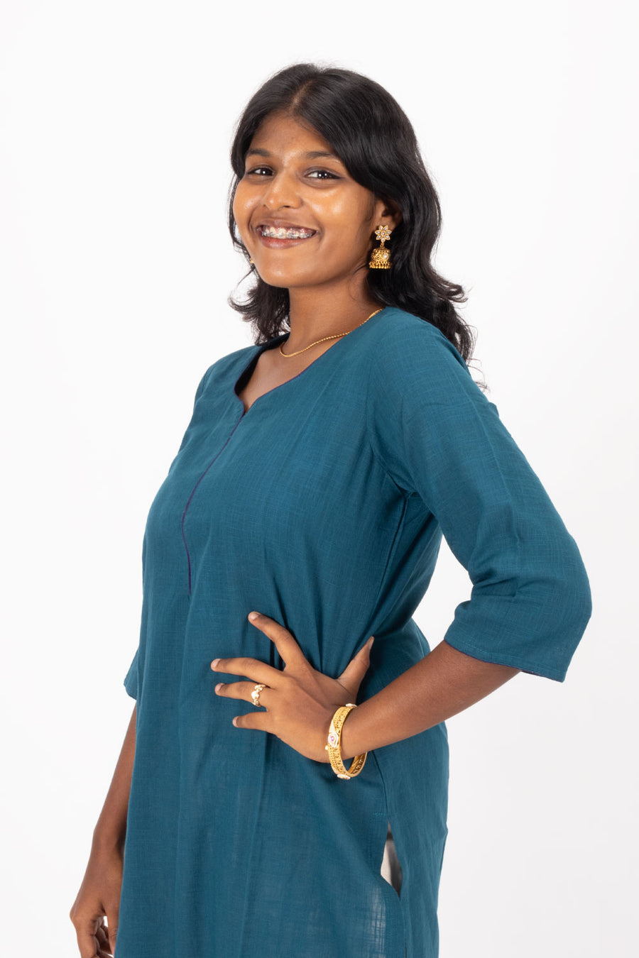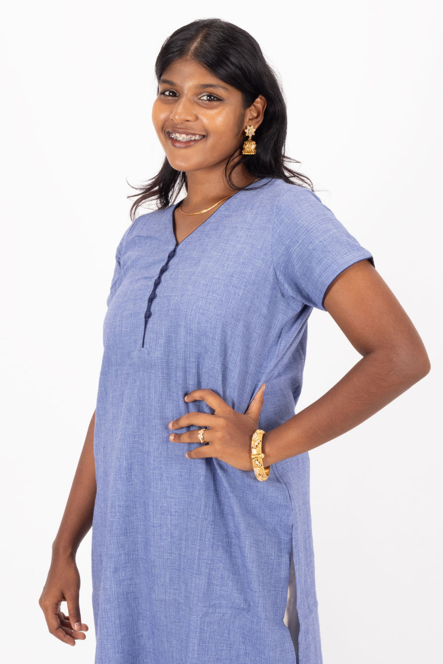 Meet your new favorite go-to piece! This handcrafted blue cotton kurta is all about that perfect blend of comfort and style. Woven from soft, breathable cotton, it's your ticket to looking put-together without any fuss. The sol...