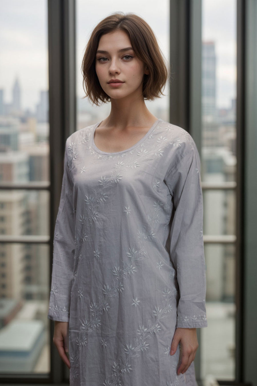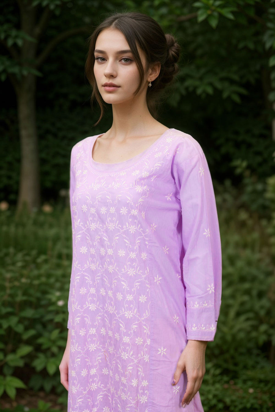 Elevate your style with this Pink Chikankari Embroidery Cotton Kurta. Made from soft, breathable cotton, it ensures all-day comfort while showcasing exquisite hand-embroidered Chikankari patterns. Its delicate design adds a gra...