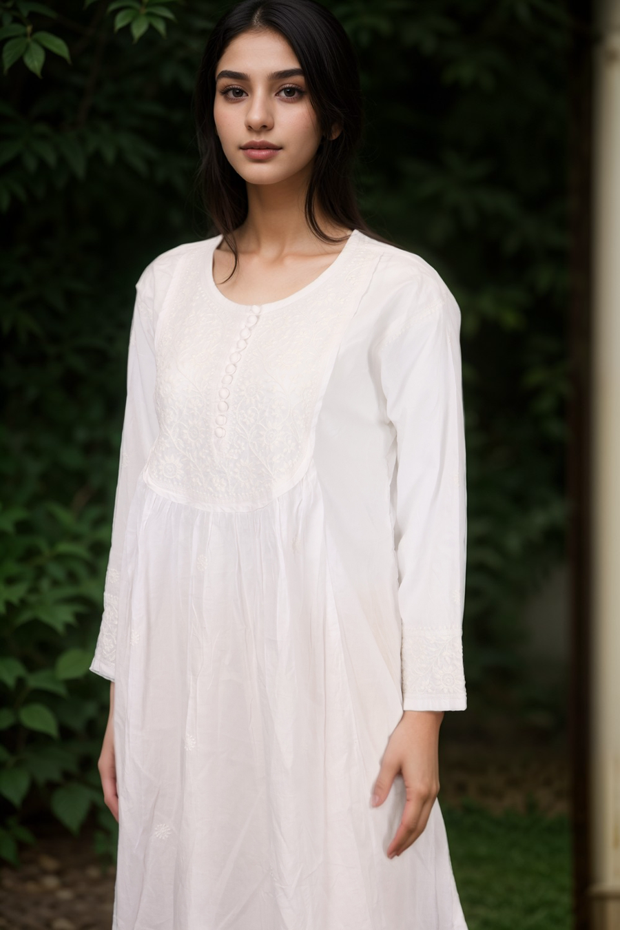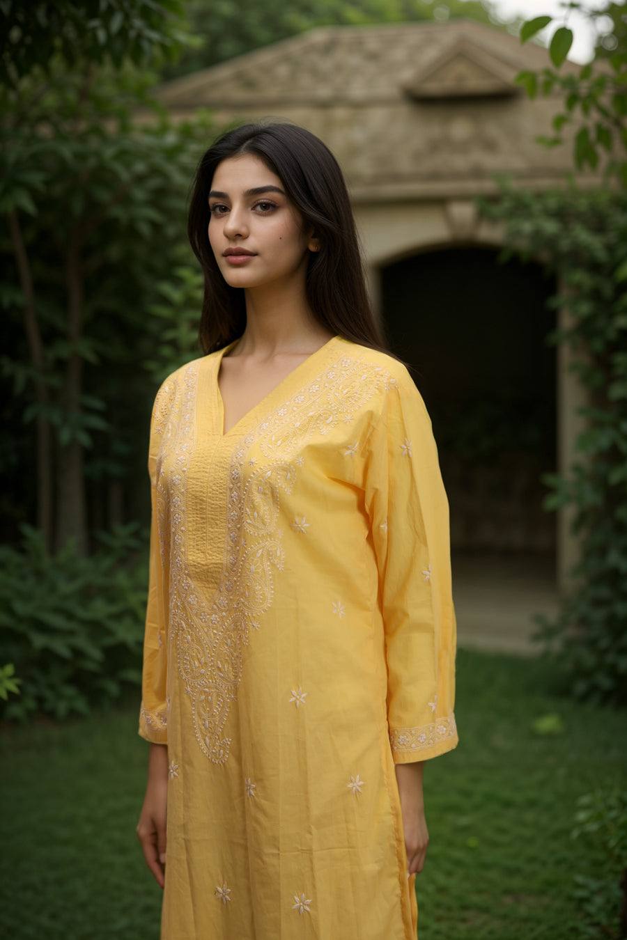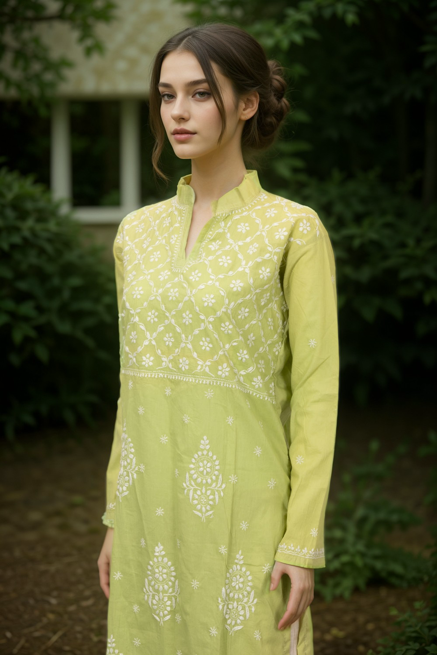 Elevate your ethnic wardrobe with this Green Chikankari Embroidery Organza Kurta. Crafted from delicate organza fabric, it features intricate chikankari embroidery that adds timeless elegance. Lightweight and breathable, this k...
